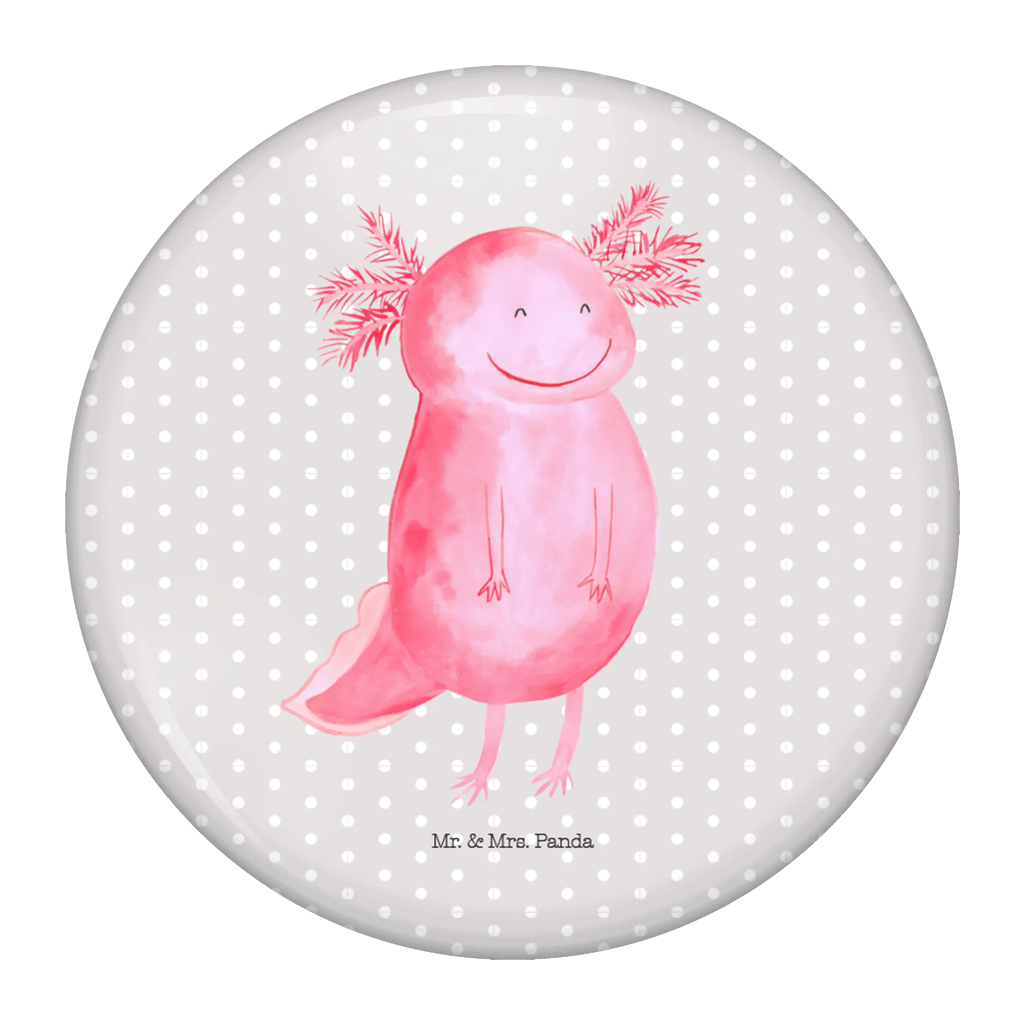 Du suchst das perfekte Geschenk für jemanden, der immer gute Laune verbreitet? Dann ist der 50mm Button mit dem fröhlichen Axolotl-Motiv von Mr. & Mrs. Panda genau das Richtige!
