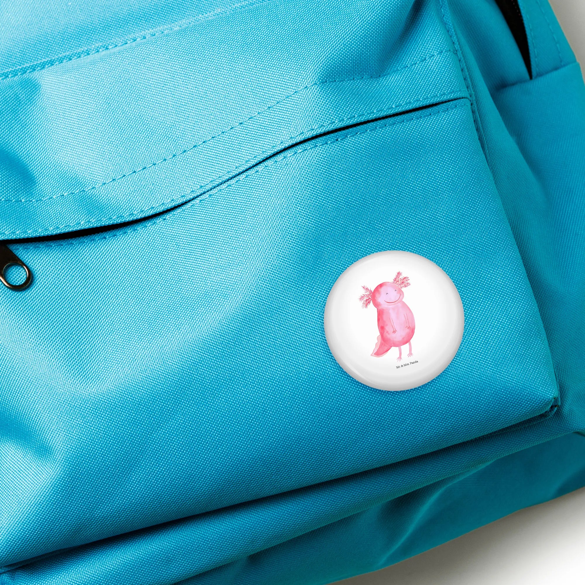 Der 50mm Button mit dem fröhlichen Axolotl-Motiv aus der Kollektion Axolotl von Mr. & Mrs. Panda ist das perfekte Geschenk für alle, die das Leben mit einem Lächeln betrachten. Dieser niedliche Anstecker verbreitet sofort gute Laune. Der lächelnde Axolotl symbolisiert Freude und Unbeschwertheit – ideal für alle, die eine Portion Motivation in ihren Alltag brauchen.