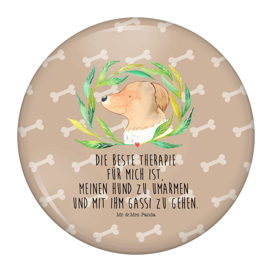 Die Botschaft auf dem Button spricht eine Wahrheit aus, die jeder Hundebesitzer nachvollziehen kann: "Die beste Therapie für mich ist, meinen Hund zu umarmen und mit ihm Gassi zu gehen." Diese Worte bringen das Gefühl von Geborgenheit und Freude, das ein Hund in unser Leben bringt, perfekt zum Ausdruck.