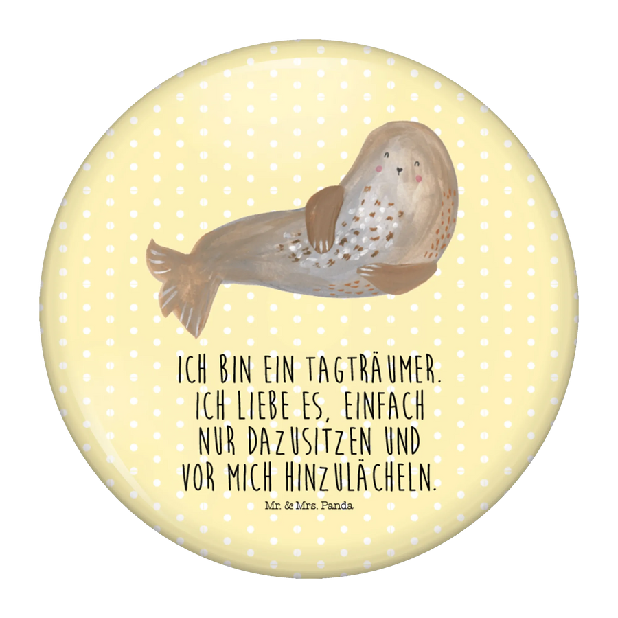 Button Robbe lachend - mit Spruch - Gelb Pastell