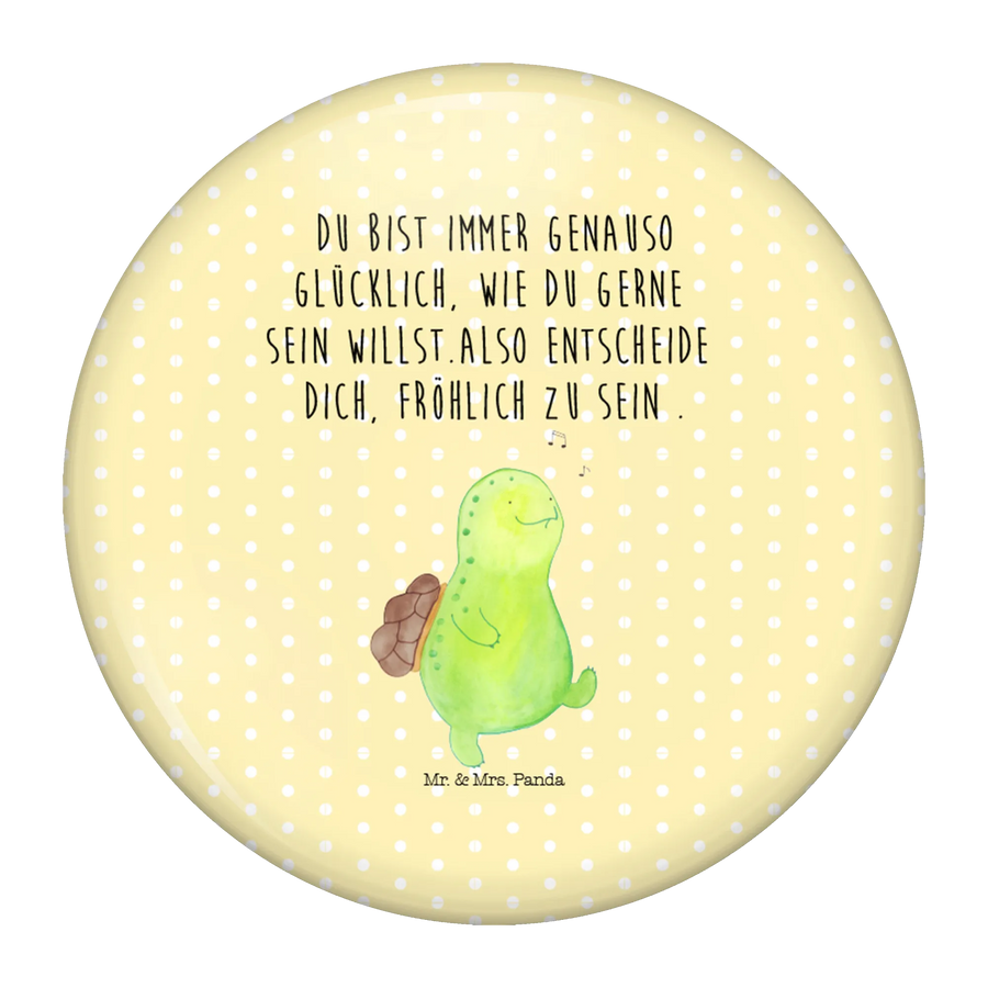 Der 50mm Button mit dem fröhlichen Schildkröten-Motiv von Mr. & Mrs. Panda ist die perfekte Geschenkidee für Menschen, die Freude, Motivation und Lebensfreude verbreiten möchten!
