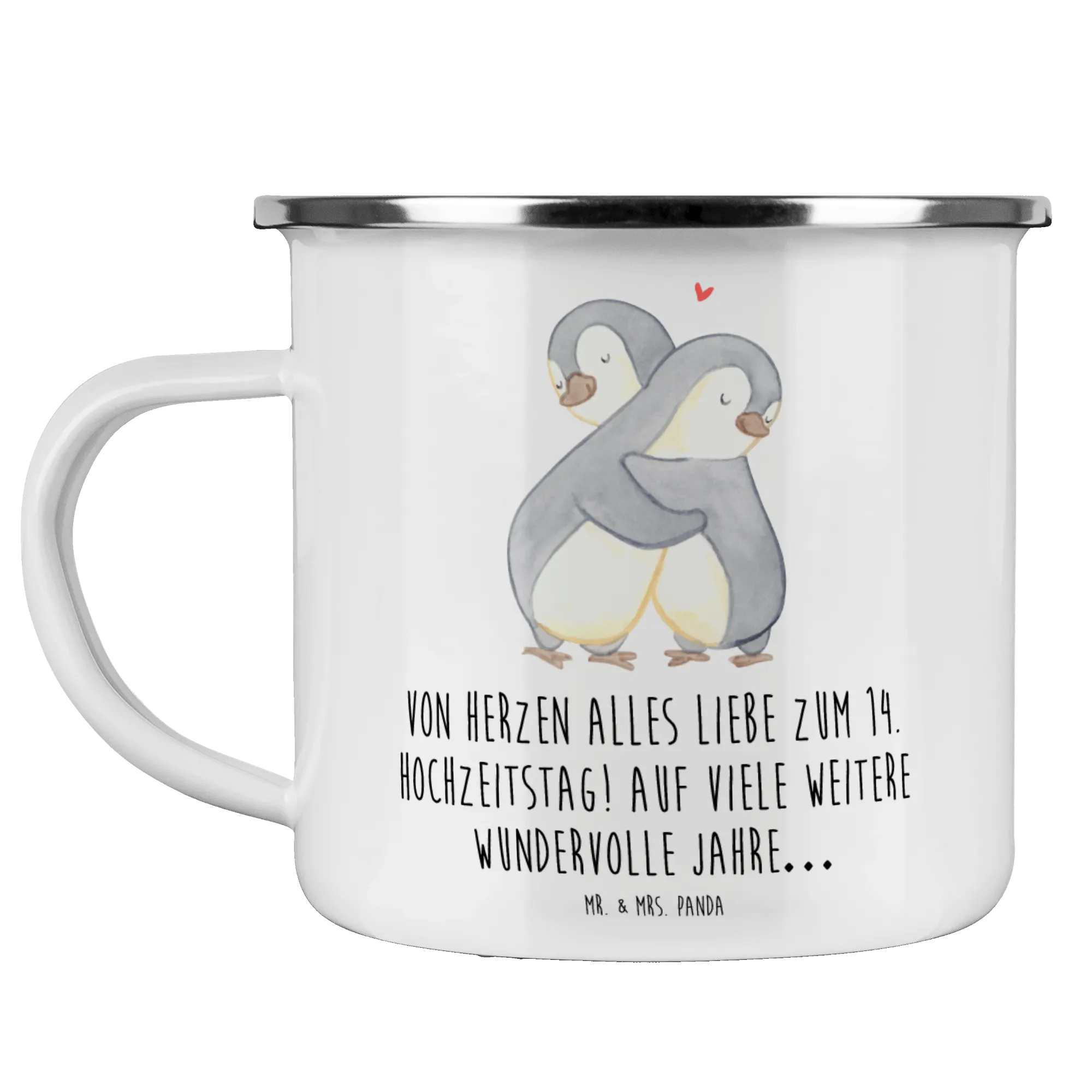 Entdecke die zauberhafte Camping Emaille Tasse zum 14. Hochzeitstag in der besonderen Motivausführung Elfenbeinhochzeit von Mr. & Mrs. Panda. Diese liebevoll gestaltete Tasse ist das perfekte Geschenk für all diejenigen, die diesen romantischen Anlass gebührend feiern möchten. Ob für den Partner oder die beste Freundin, mit dem Slogan "Von Herzen alles Liebe zum 14. Hochzeitstag! Auf viele weitere wundervolle Jahre…" zauberst du ein Lächeln ins Gesicht und schaffst unvergessliche Momente.