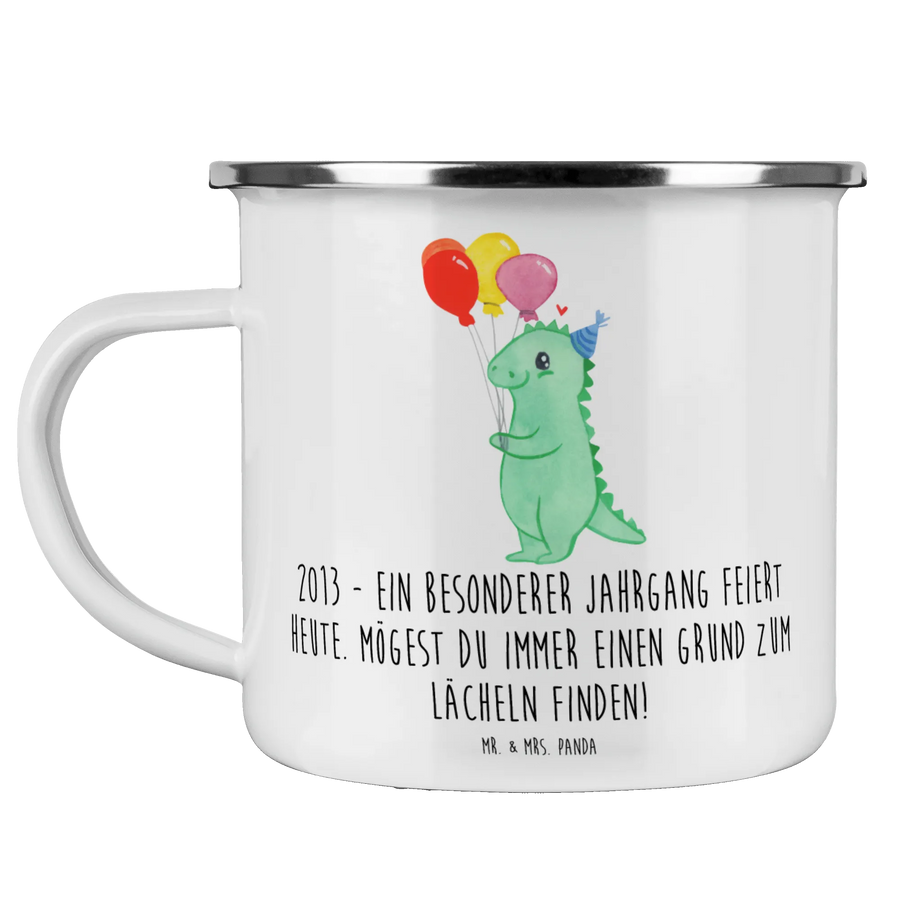 Die Camping Emaille Tasse "2013 Geburtstag" von Mr. & Mrs. Panda ist ein ganz besonderes Geschenk, das Freude und Glück verbreitet! Ob beim Camping, auf einer Wanderung oder einfach nur zu Hause – diese Tasse ist nicht nur praktisch, sondern auch ein liebevolles Geburtstagsgeschenk für jeden, der in diesem besonderen Jahrgang geboren wurde.