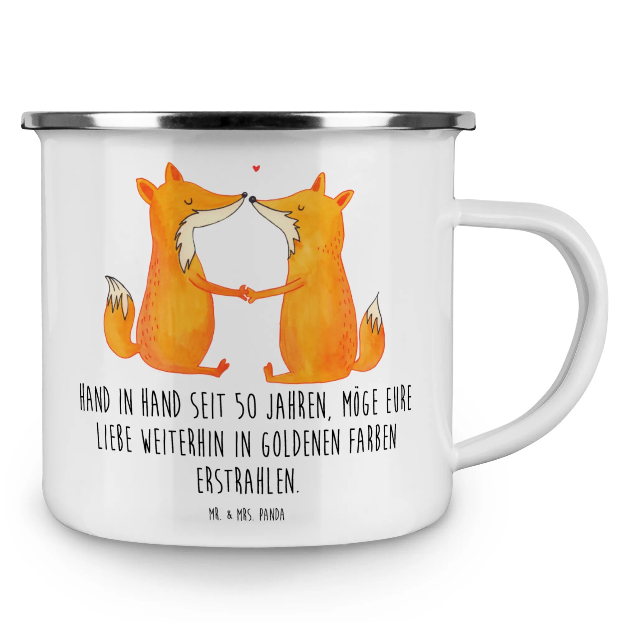 Entdecke die perfekte Camping Emaille Tasse zum 50. Hochzeitstag – der goldenen Hochzeit! Diese wunderschöne und beständige Tasse von Mr. & Mrs. Panda ist nicht nur ideal für Campingausflüge oder Wanderungen, sondern auch ein liebevolles Geschenk für Paare, die ihr halbes Jahrhundert an Liebe feiern.