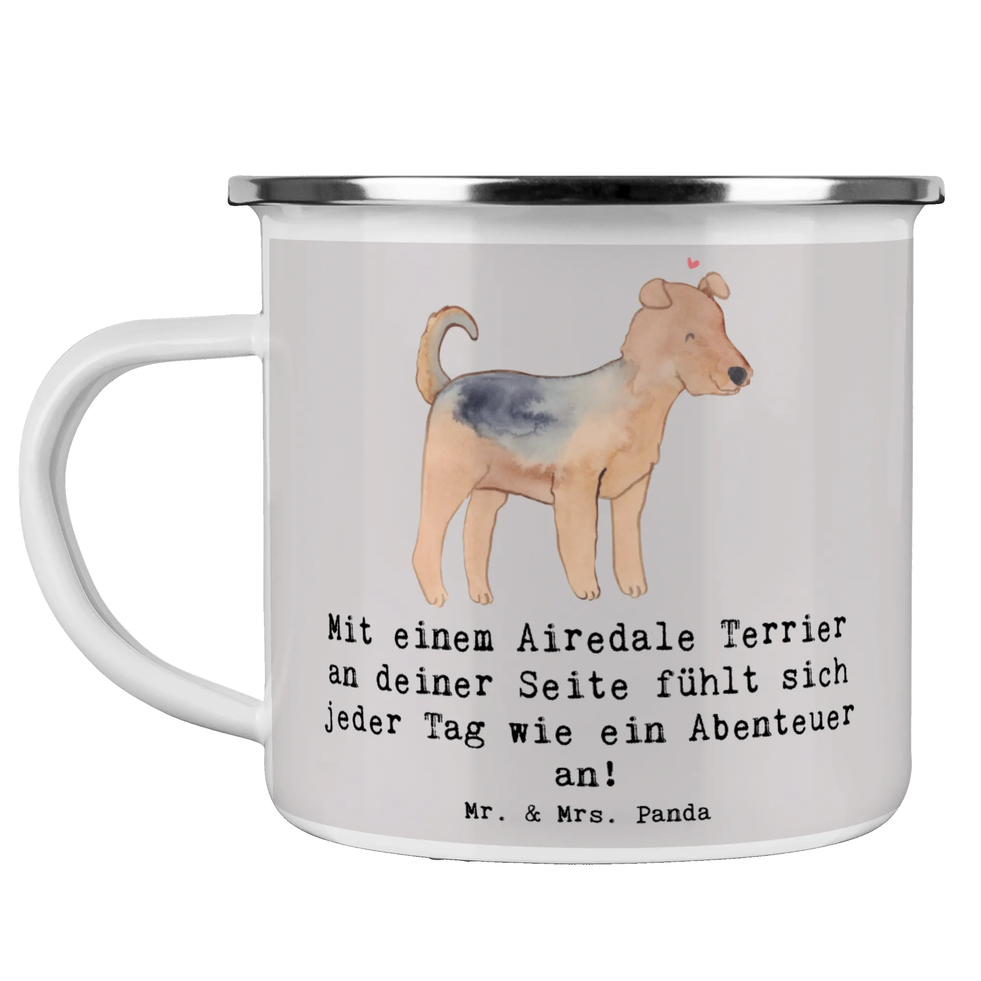 Camping Emaille Tasse Airedale Terrier Abenteuer - Weiß