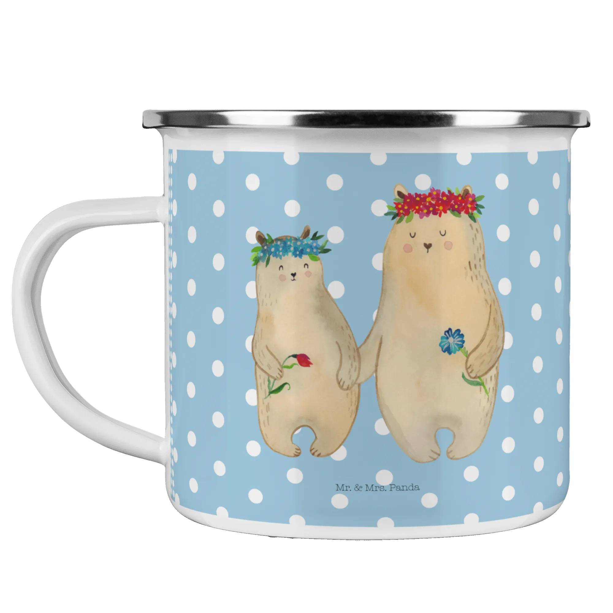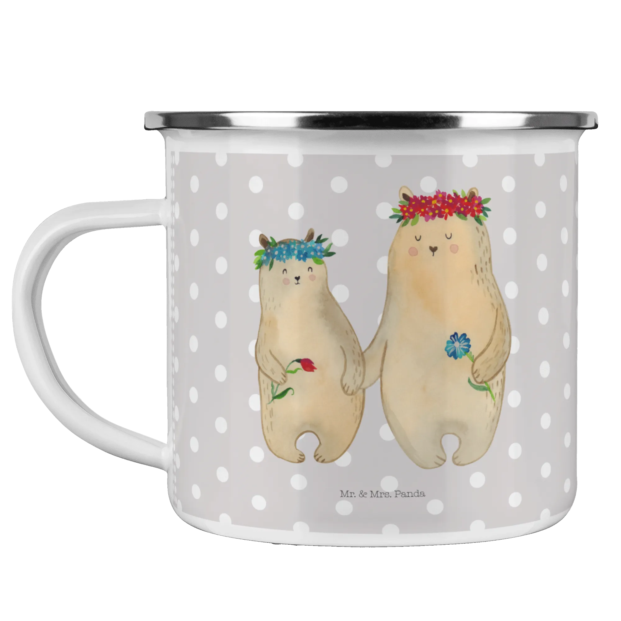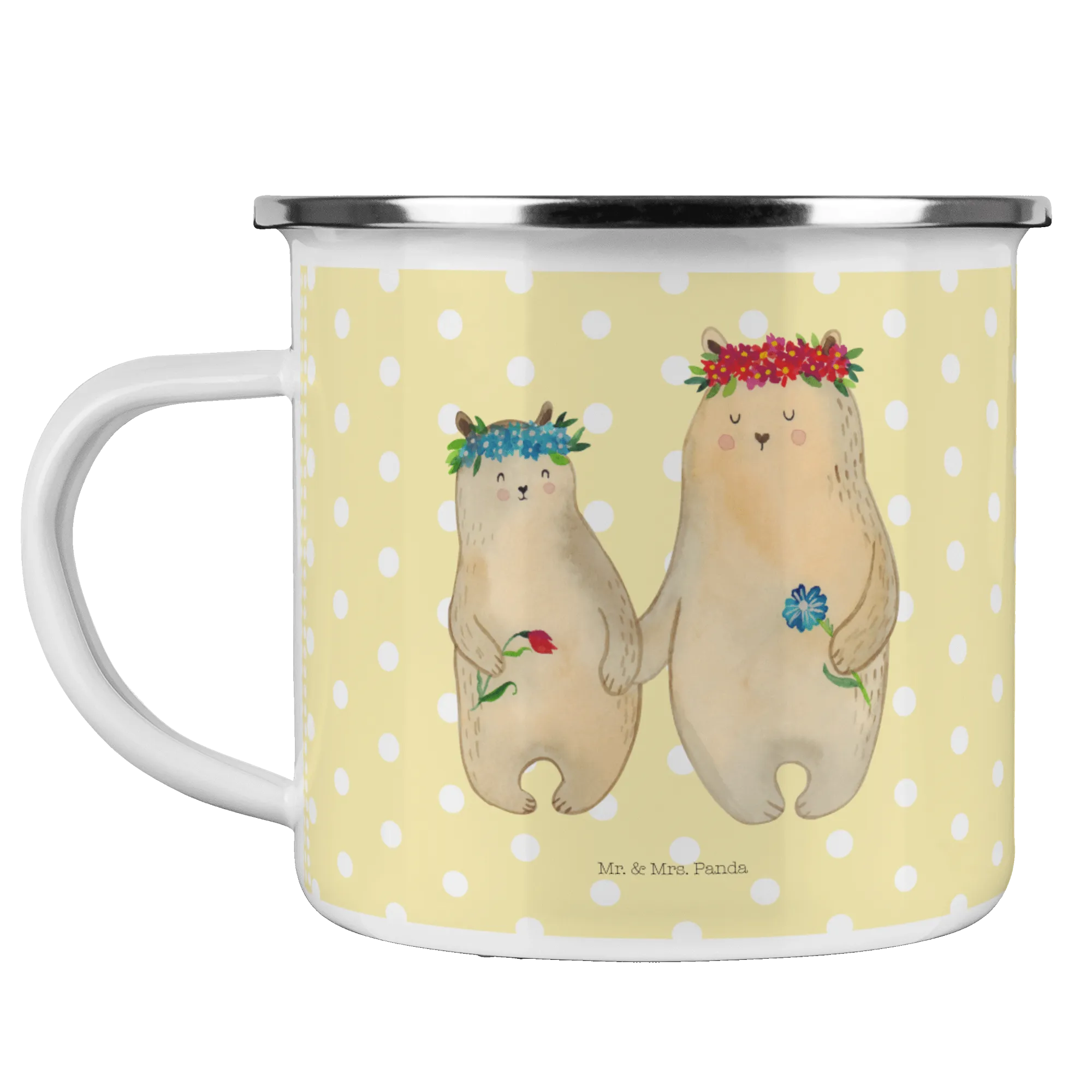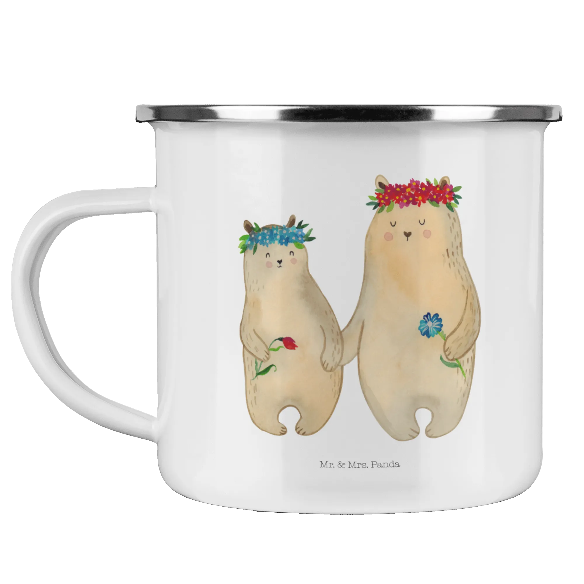 Camping Emaille Tasse Bären mit Blumenkranz – Mr. & Mrs. Panda
