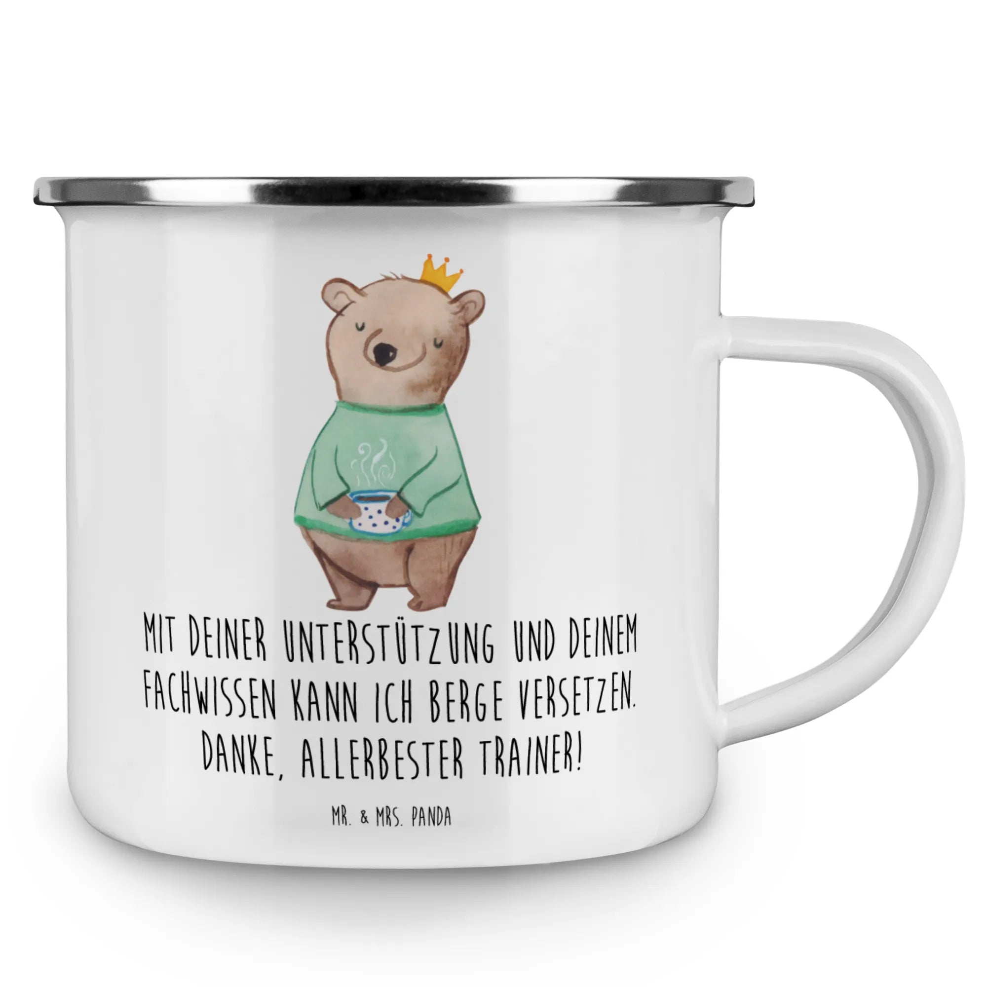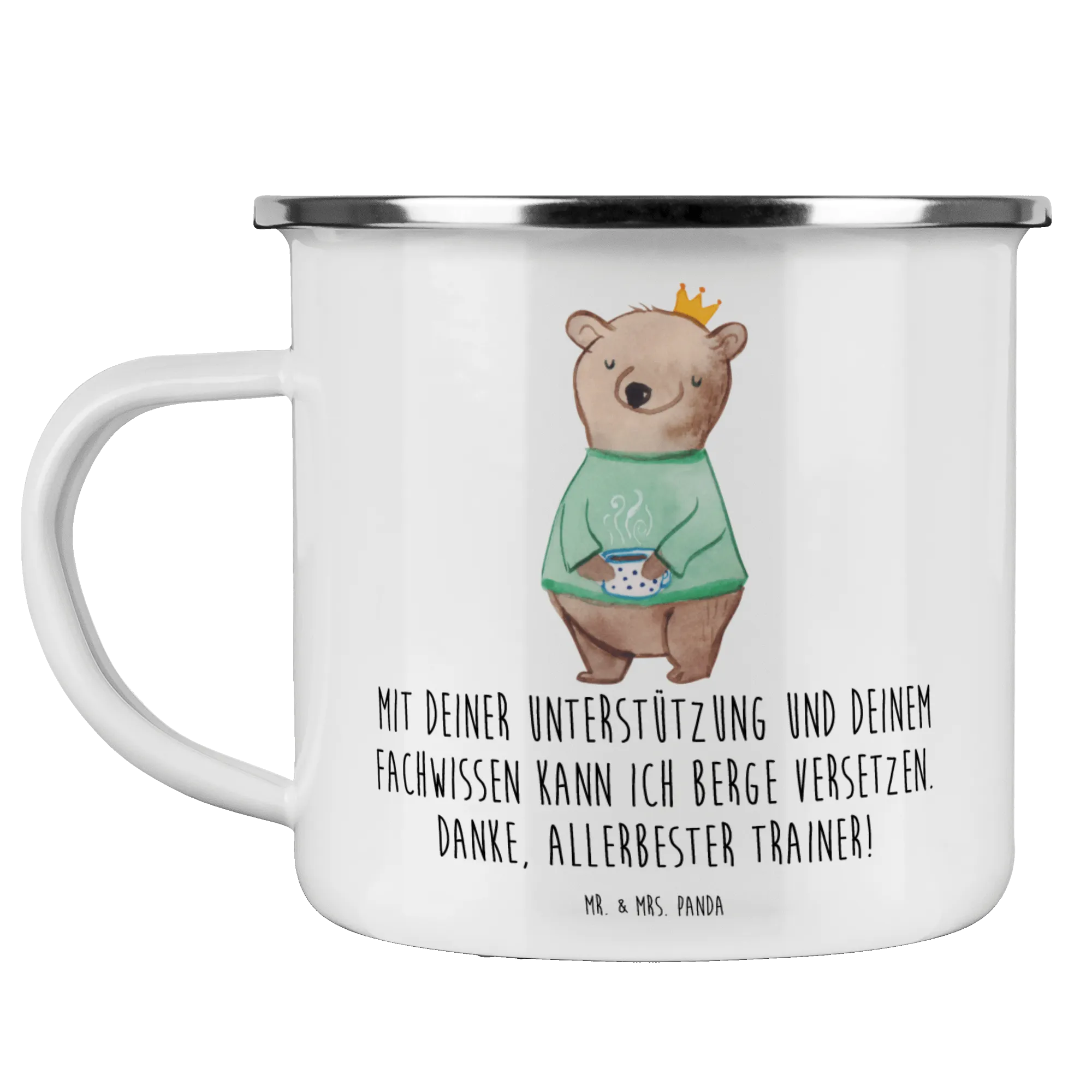 Entdecke die perfekte Geschenkidee für jeden Anlass mit unserer wunderschönen Camping Emaille Tasse "Trainer" aus der Dankeschön-Kollektion von Mr. & Mrs. Panda! Diese Tasse ist nicht nur ein Blickfang, sondern auch extrem praktisch für all deine Abenteuer in der Natur. Mit ihrem robusten und kratzfesten Material kannst du dich darauf verlassen, dass sie dich bei jedem Campingausflug oder jeder Wanderung begleitet. Ob heißer Kaffee am Morgen oder erfrischender Tee am Nachmittag – diese Emaille Tasse kann sowohl warme als auch kalte Getränke aufnehmen und hält sie immer in deinem Lieblingszustand.
