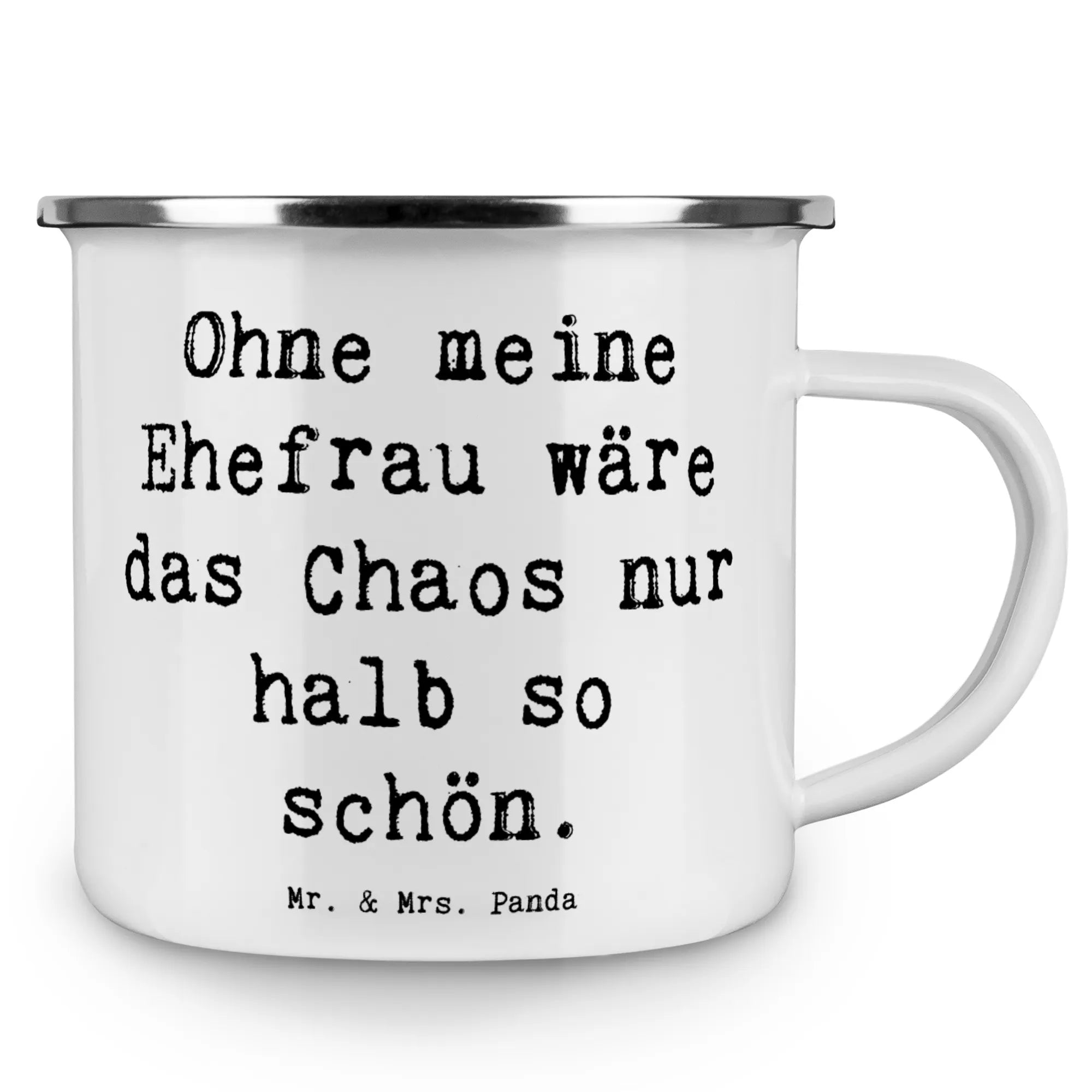 Camping Emaille Tasse Spruch Ohne meine Ehefrau wäre das Chaos nur halb so schön.