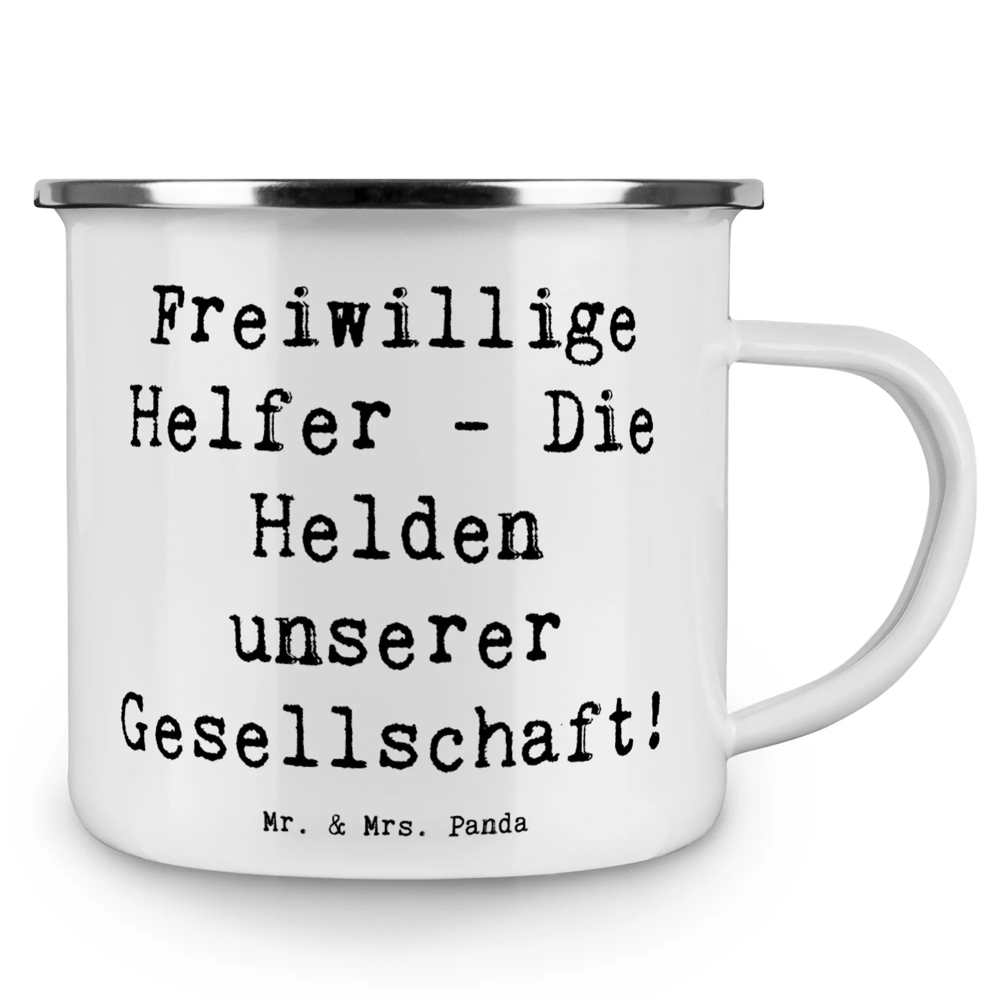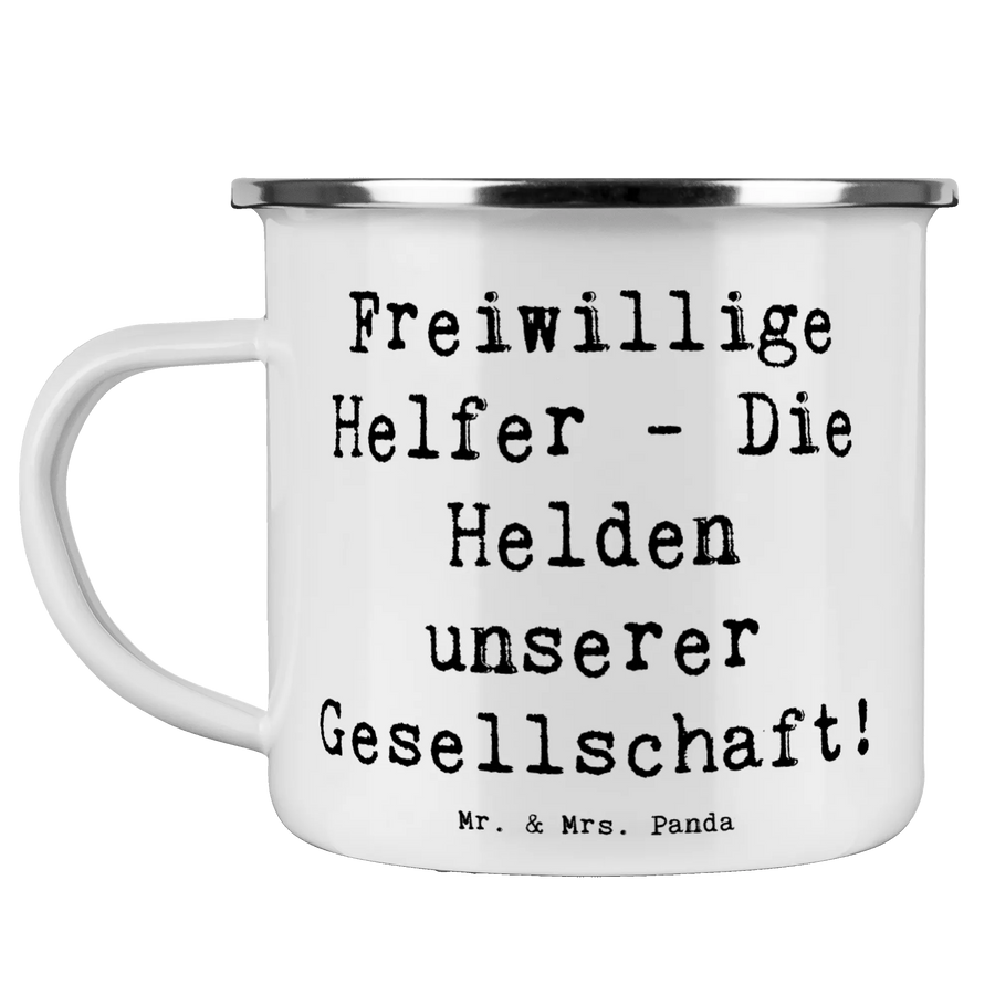 Die Camping Emaille Tasse 'Freiwillige Helfer - Die Helden unserer Gesellschaft!' von Mr. & Mrs. Panda ist das perfekte Geschenk für all jene, die sich ehrenamtlich engagieren. Diese charmante Tasse ist nicht nur funktional, sondern auch ein liebevolles Dankeschön für die wertvolle Arbeit, die diese Menschen täglich leisten.