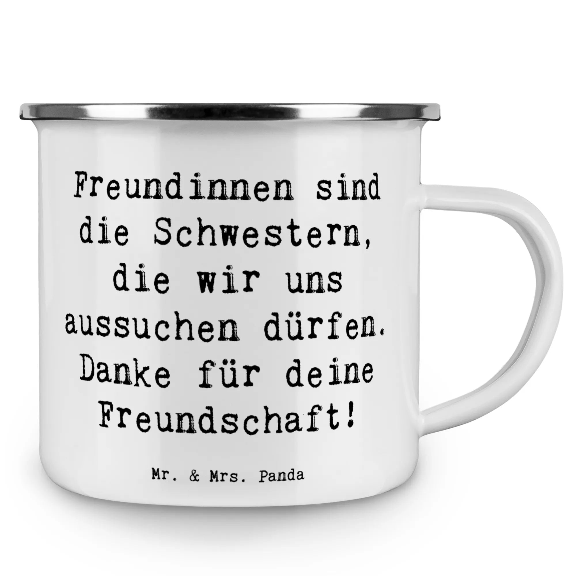 Mit der Camping Emaille Tasse von Mr. & Mrs. Panda wird jeder Schluck zu einem besonderen Erlebnis. Ideal für die nächste Campingreise oder einfach nur für die gemütliche Kaffeepause im Garten. Entdecke jetzt die Liebe und Freundschaft in jedem Detail dieser Tasse. Mach deiner Freundin eine Freude und erinnere sie daran, wie wichtig sie für dich ist – mit einem Geschenk, das von Herzen kommt.