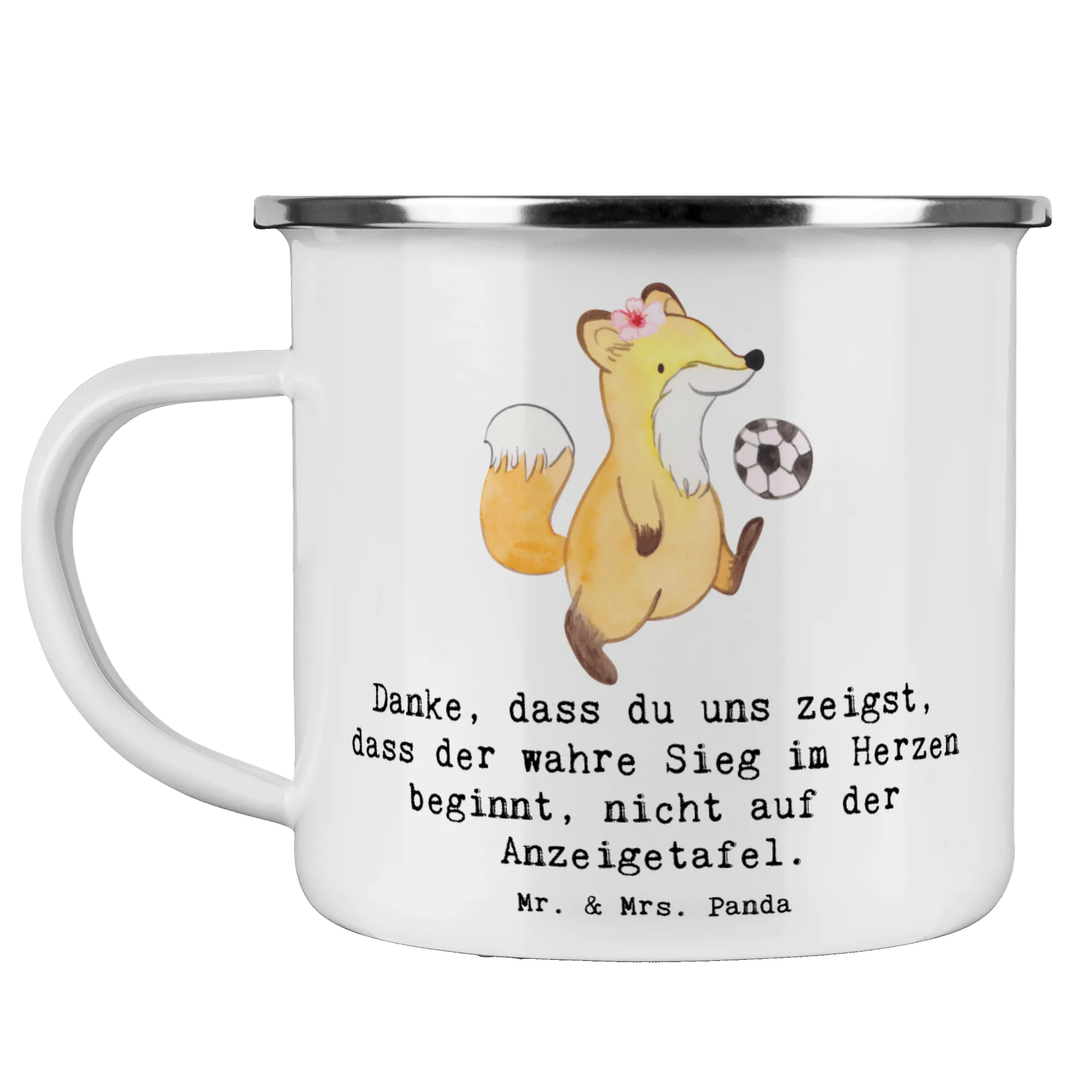 Entdecke die perfekte Camping Emaille Tasse für Fußball Trainerinnen aus der speziellen Kollektion "Sportarten Trainerin" von Mr. & Mrs. Panda! Ein tolles Geschenk, um deine Anerkennung zu zeigen, sei es zum Dankeschön, als Abschiedsgeschenk oder einfach, um zu zeigen, wie viel deine Trainerin dir bedeutet.
