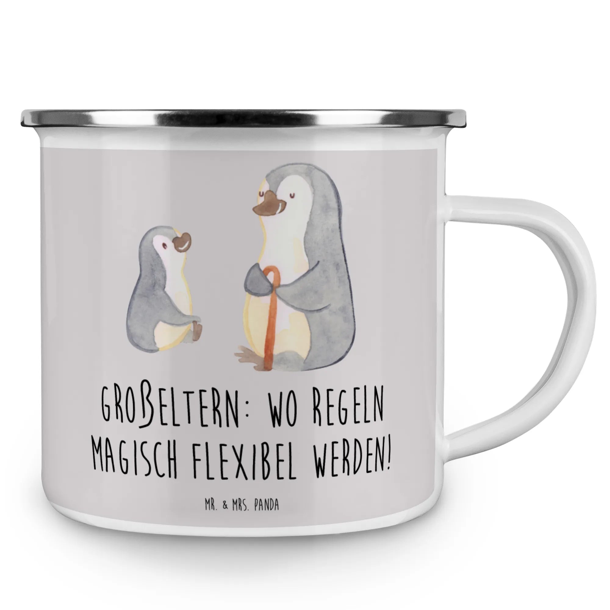 Entdecke die besondere Camping Emaille Tasse von Mr. & Mrs. Panda mit dem zauberhaften Motiv "Großeltern: wo Regeln magisch flexibel werden!". Diese wunderschöne und beständige Tasse ist das perfekte Geschenk für jede Gelegenheit, sei es zum Geburtstag, zu Weihnachten oder einfach als kleine Aufmerksamkeit für die geliebten Großeltern.