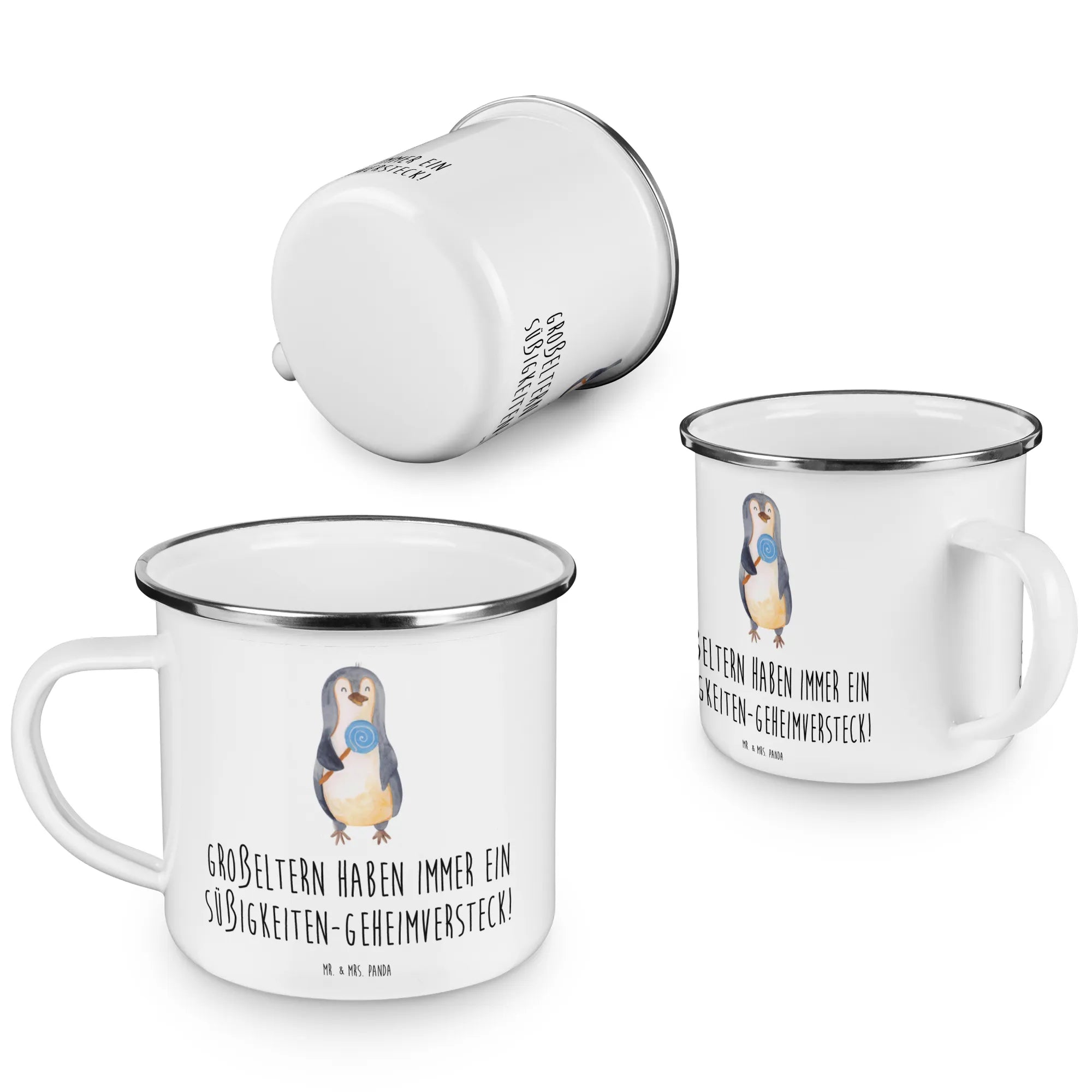 Entdecke die wunderschöne Camping Emaille Tasse von Mr. & Mrs. Panda, die perfekt für alle Großeltern ist! Mit dem charmanten Motiv "Großeltern haben immer ein Süßigkeiten-Geheimversteck!" ist diese Tasse nicht nur ein praktischer Begleiter für Campingausflüge und Wanderungen, sondern auch ein liebevolles Geschenk, das die besondere Beziehung zwischen Großeltern und Enkelkindern widerspiegelt.