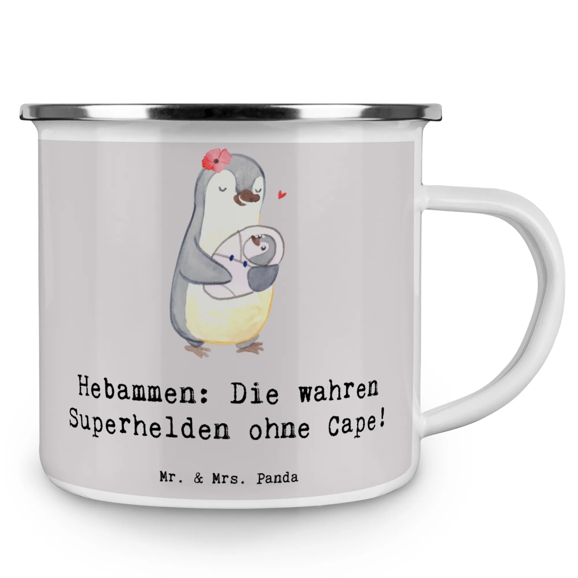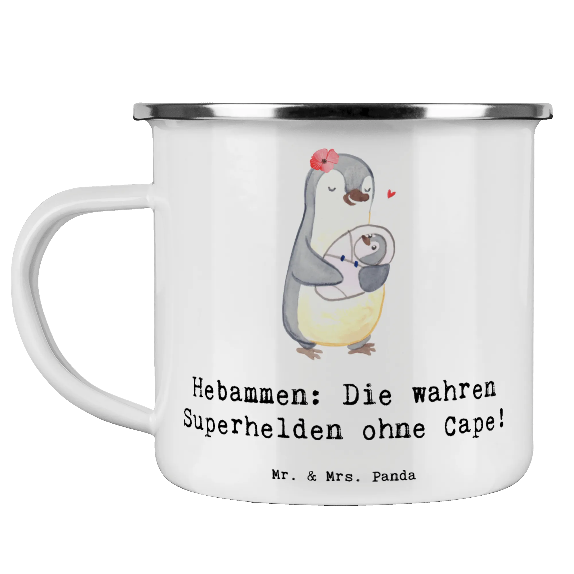 Die wunderschöne Camping Emaille Tasse mit dem Motto 'Hebammen: Die wahren Superhelden ohne Cape!' von Mr. & Mrs. Panda ist das perfekte Geschenk für alle Hebammen da draußen. Ob beim Camping, auf Wanderungen oder einfach beim Genuss eines heißen Getränks zu Hause, diese Tasse begleitet dich überall hin. Mit einem Durchmesser von 80 mm und einer Füllmenge von 300 ml ist sie ideal für deinen Kaffee, Tee oder Kakao, egal wo du gerade bist.