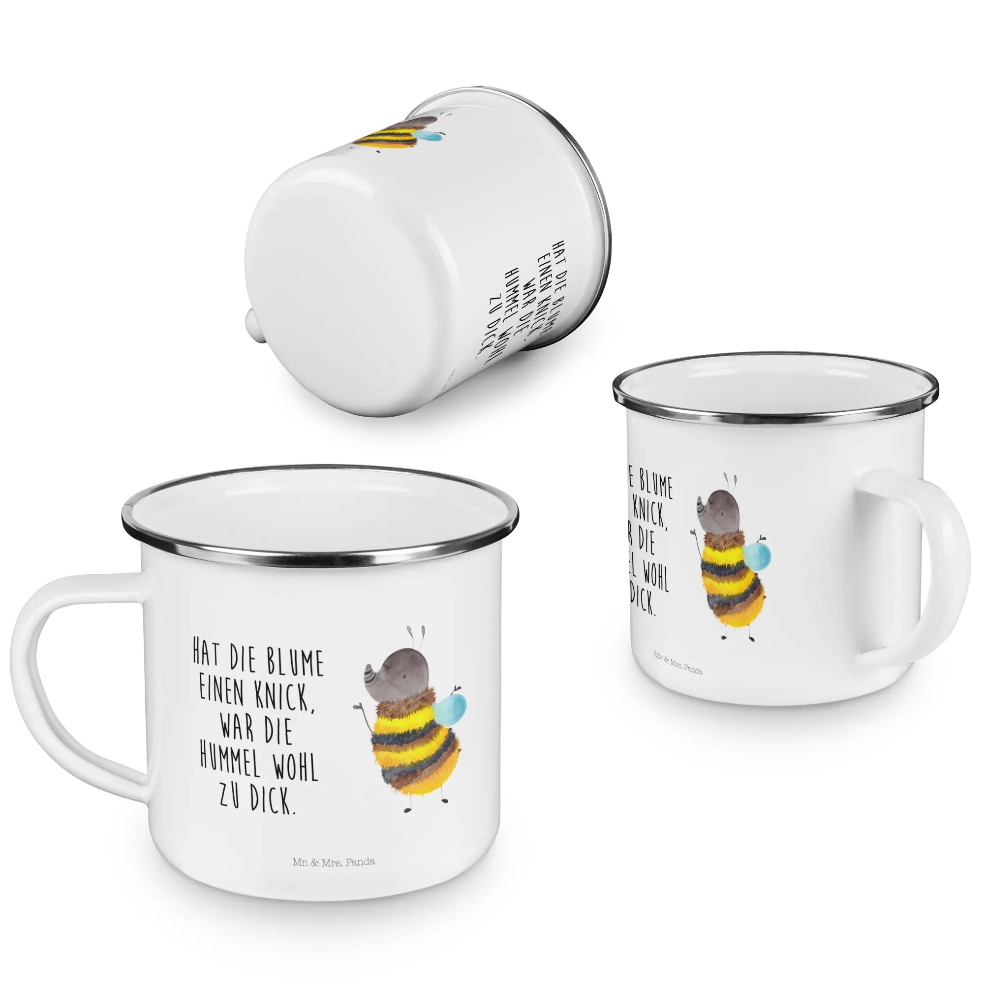 Du suchst nach einem besonderen Geschenk für einen Campingliebhaber oder für dich selbst? Dann ist die Camping Emaille Tasse "Hummel flauschig" aus der Small World Kollektion von Mr. & Mrs. Panda genau das Richtige! Mit ihrer fröhlichen Hummel, die mit ihrem flauschigen Fell und dem schönen Gelb und Schwarz begeistert, bringt sie nicht nur gute Laune, sondern ist auch äußerst praktisch für den Outdoor-Einsatz.