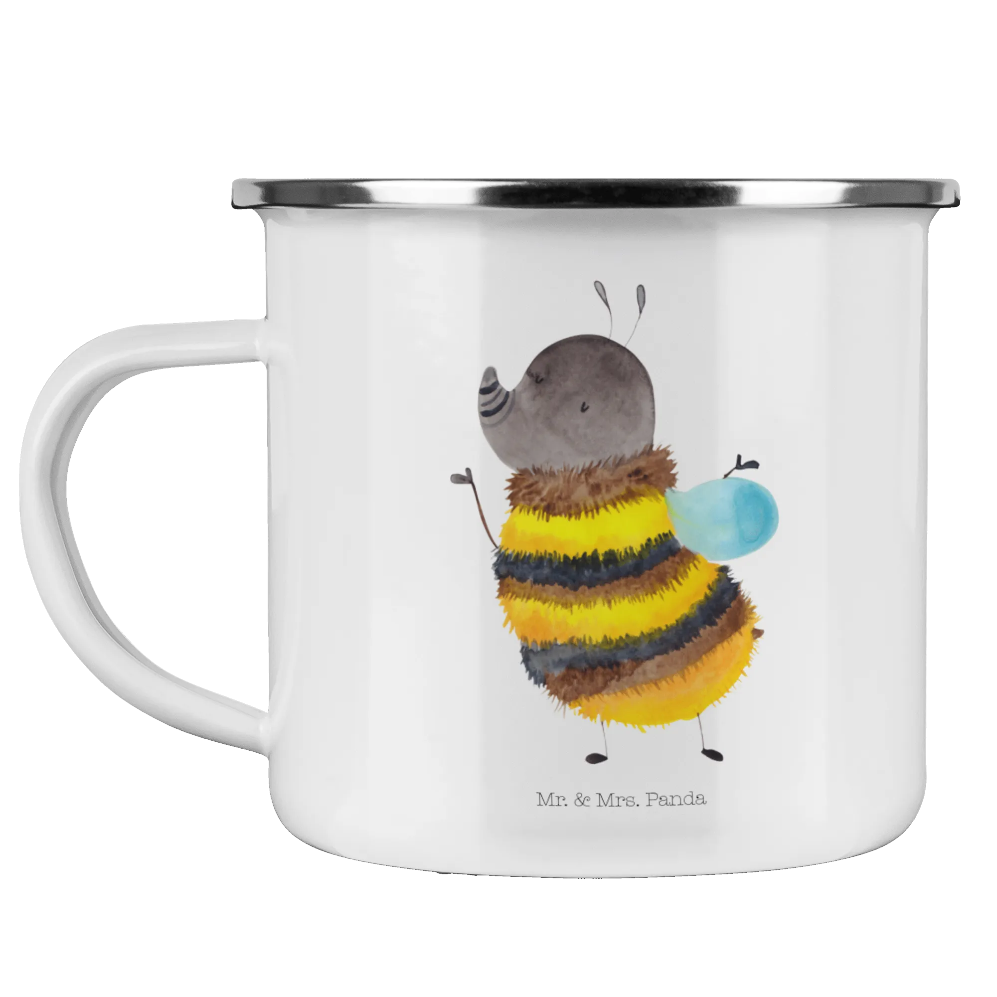 Die Camping Emaille Tasse "Hummel flauschig" von Mr. & Mrs. Panda ist die perfekte Begleiterin für alle Outdoor-Enthusiasten und Naturliebhaber! Egal, ob beim Camping, Wandern oder Picknicken – diese Tasse bringt Freude und gute Laune mit jedem Schluck.