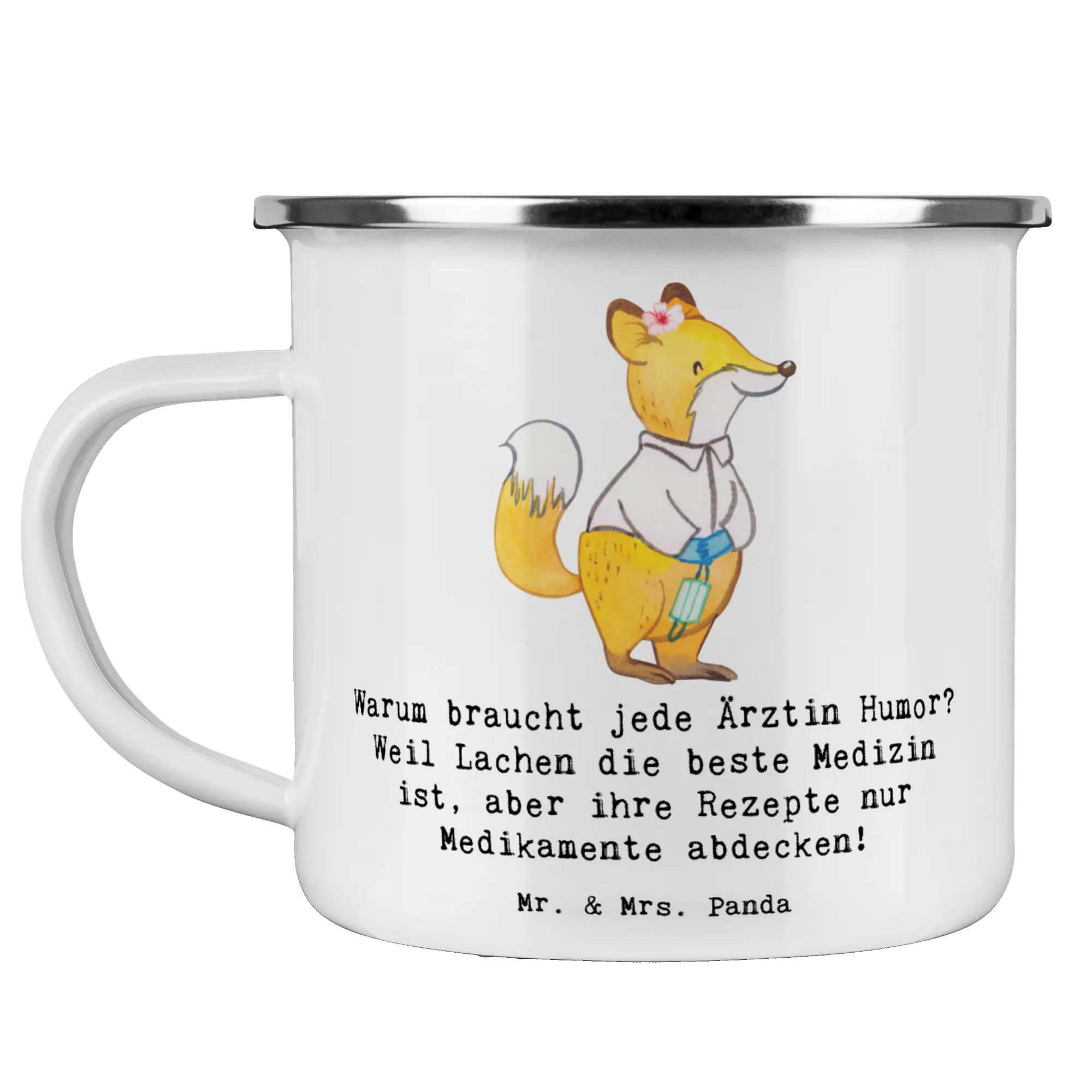 Die wunderschöne Camping Emaille Tasse "Ärztin" von Mr. & Mrs. Panda ist das ideale Geschenk für alle kreativen Herzen, die in der Welt der Medizin arbeiten! Egal, ob du selbst Ärztin bist oder einer besonderen Ärztin eine Freude machen möchtest, diese Tasse bringt nicht nur Farbe in deinen Alltag, sondern auch eine Portion Humor! Mit dem tollen Spruch "Warum braucht jede Ärztin Humor? Weil Lachen die beste Medizin ist, aber ihre Rezepte nur Medikamente abdecken!" zaubert diese Tasse jeden Morgen ein Lächeln auf dein Gesicht.