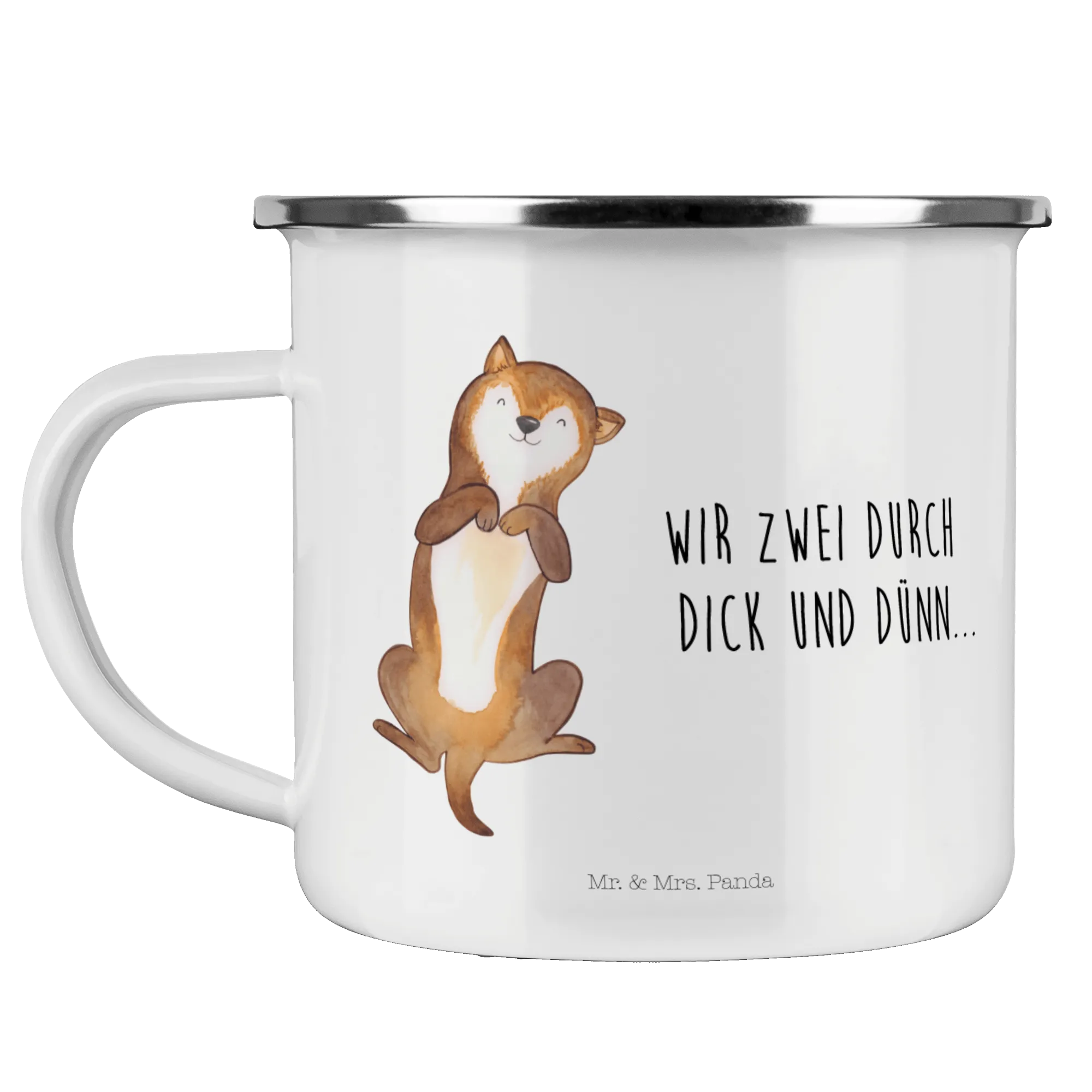 Die Camping Emaille Tasse ist perfekt für Tierliebhaber und Hundebesitzer, die ihre Liebe zu Hunden auch beim Campen nicht verstecken möchten. Ob für Dich selbst oder als Geschenk für einen anderen Hundeliebhaber – diese Tasse wird auf jeden Fall ein Lächeln zaubern! Der witzige Spruch "Wir zwei durch dick und dünn..." bringt Dich zum Schmunzeln und erinnert daran, wie wichtig Hunde in unserem Leben sind.
