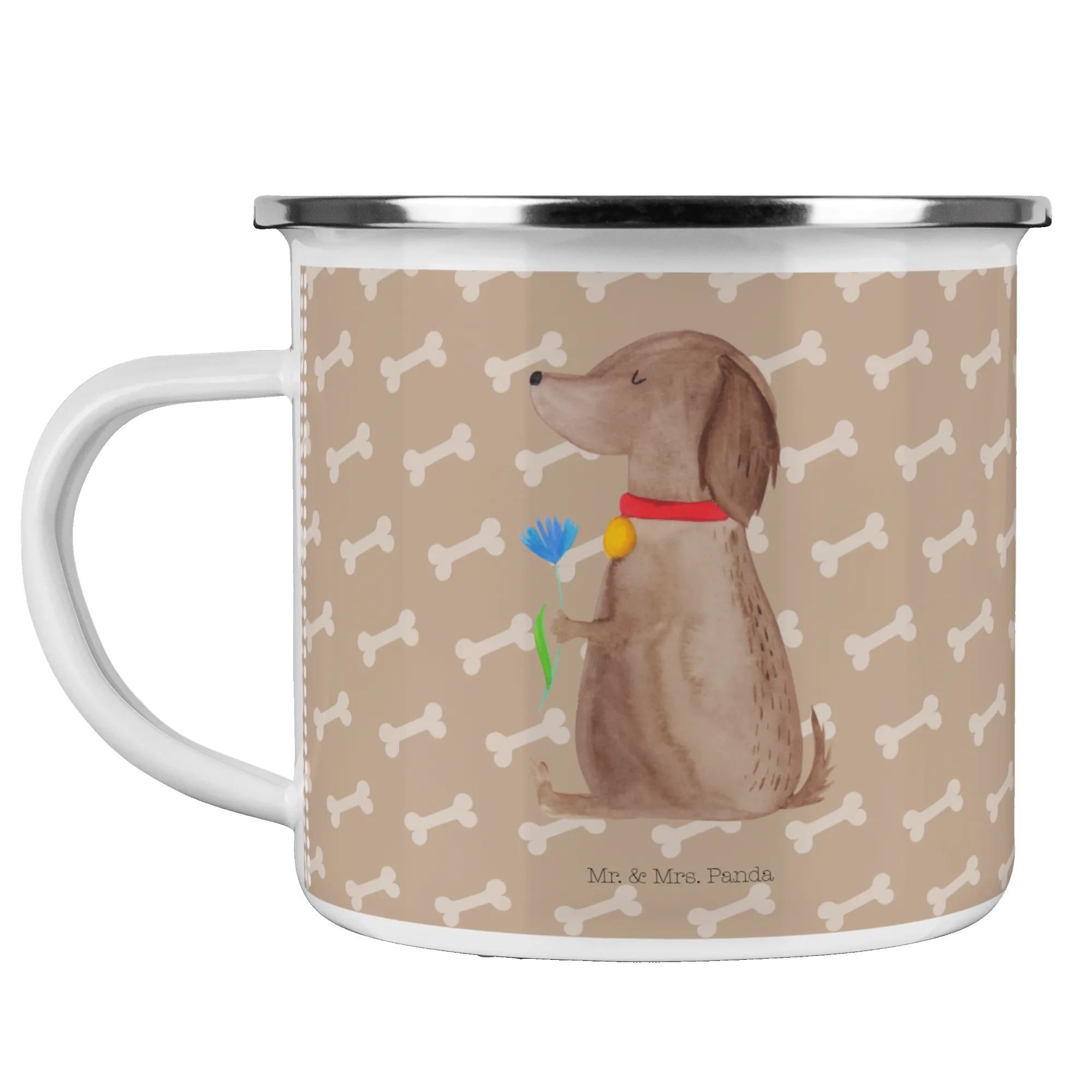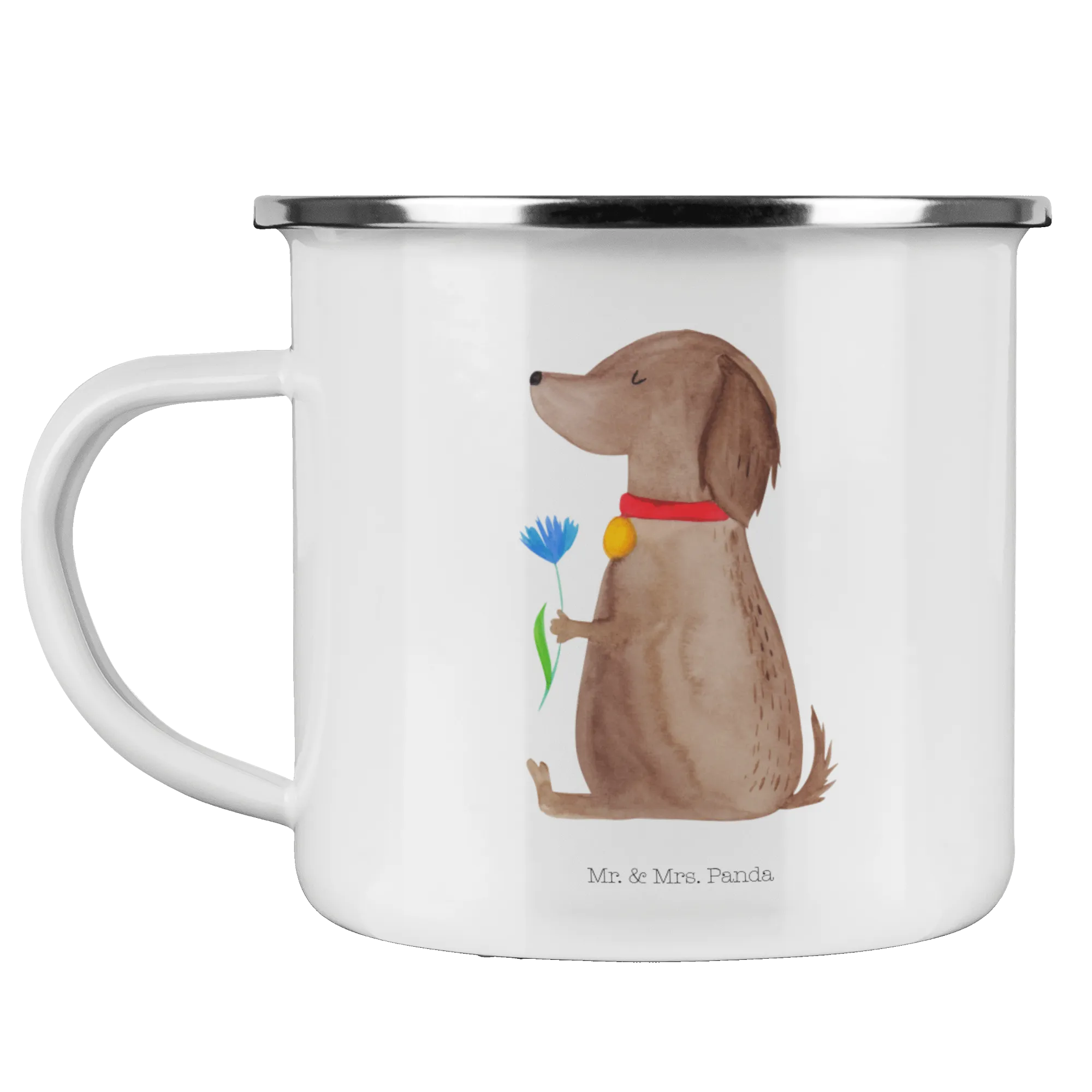 Camping Emaille Tasse „Hund Blume“ – aus der Hunde Kollektion von Mr. & Mrs. Panda