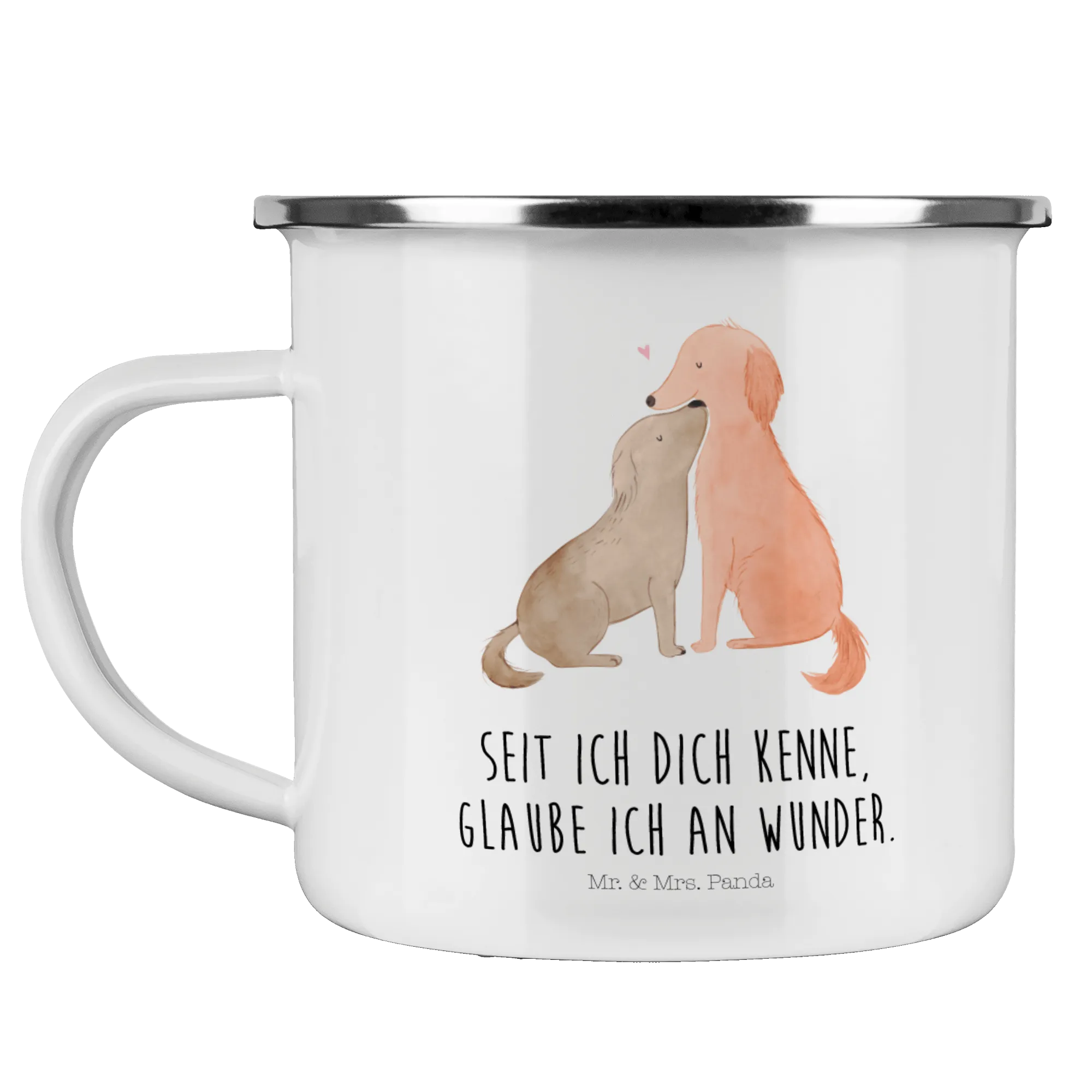 Die Camping Emaille Tasse "Hunde Liebe" von Mr. & Mrs. Panda ist das perfekte Geschenk für jeden Hundeliebhaber!