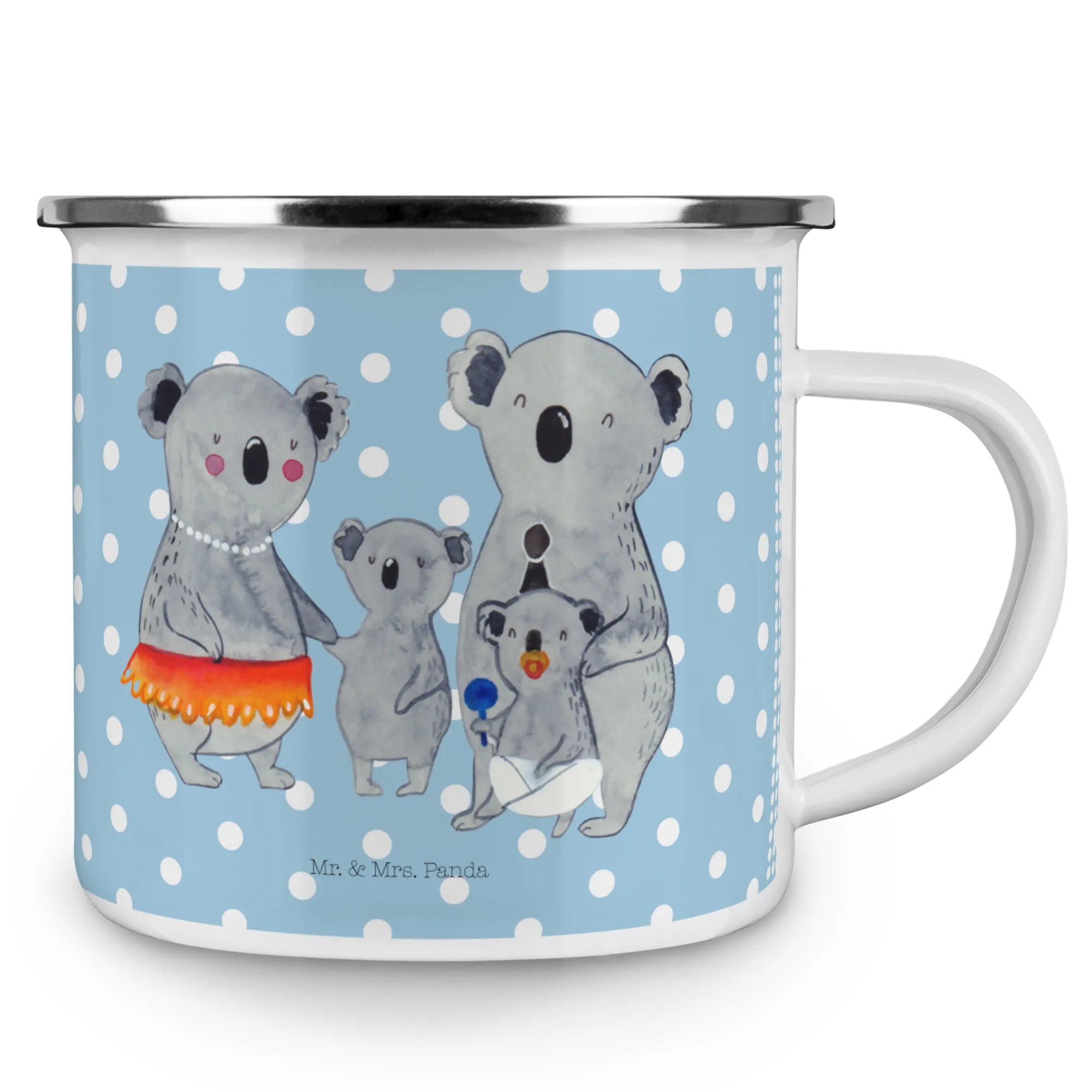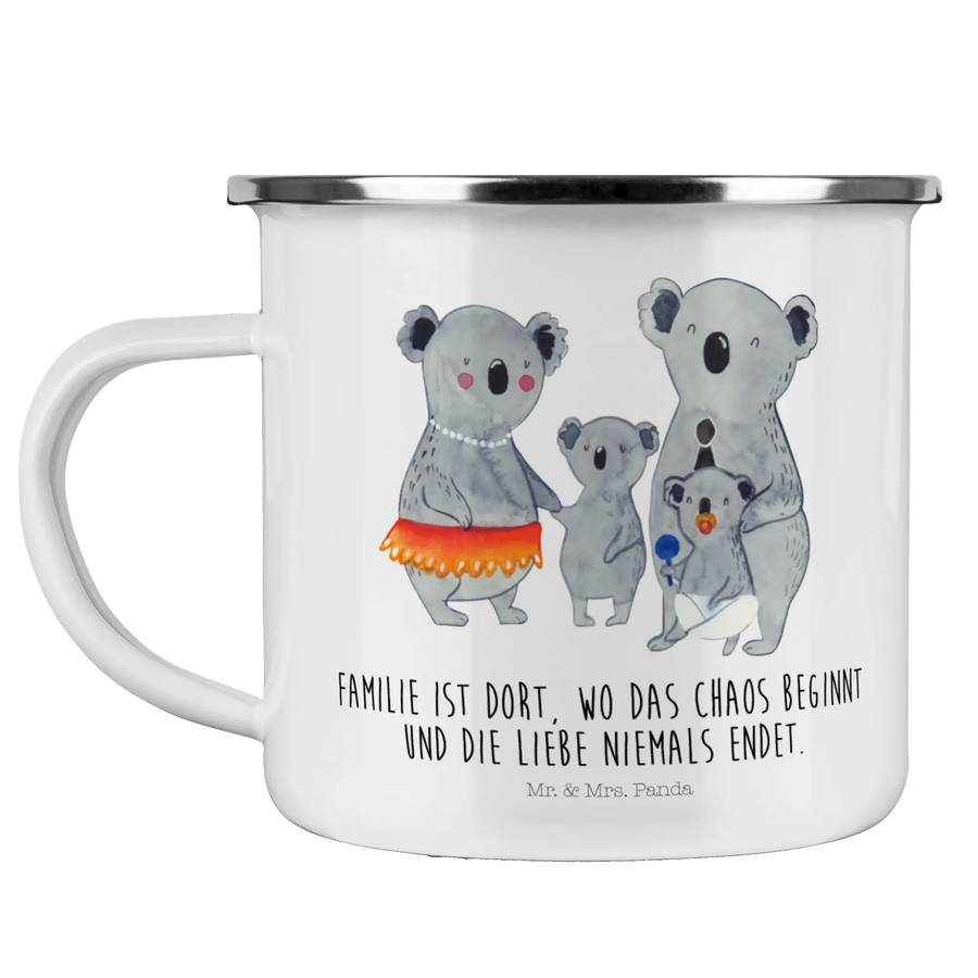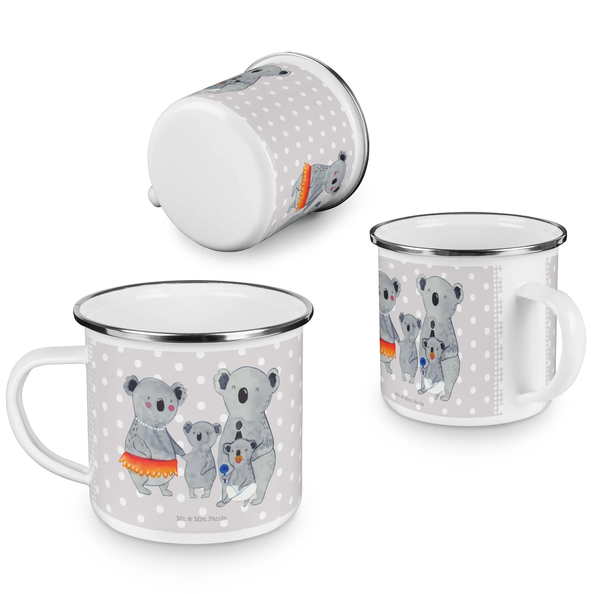 Entdecke die perfekte Camping Emaille Tasse von Mr. & Mrs. Panda mit liebevollem Koala-Motiv, die sich ideal für alle Outdoor-Enthusiasten und Familien eignet!