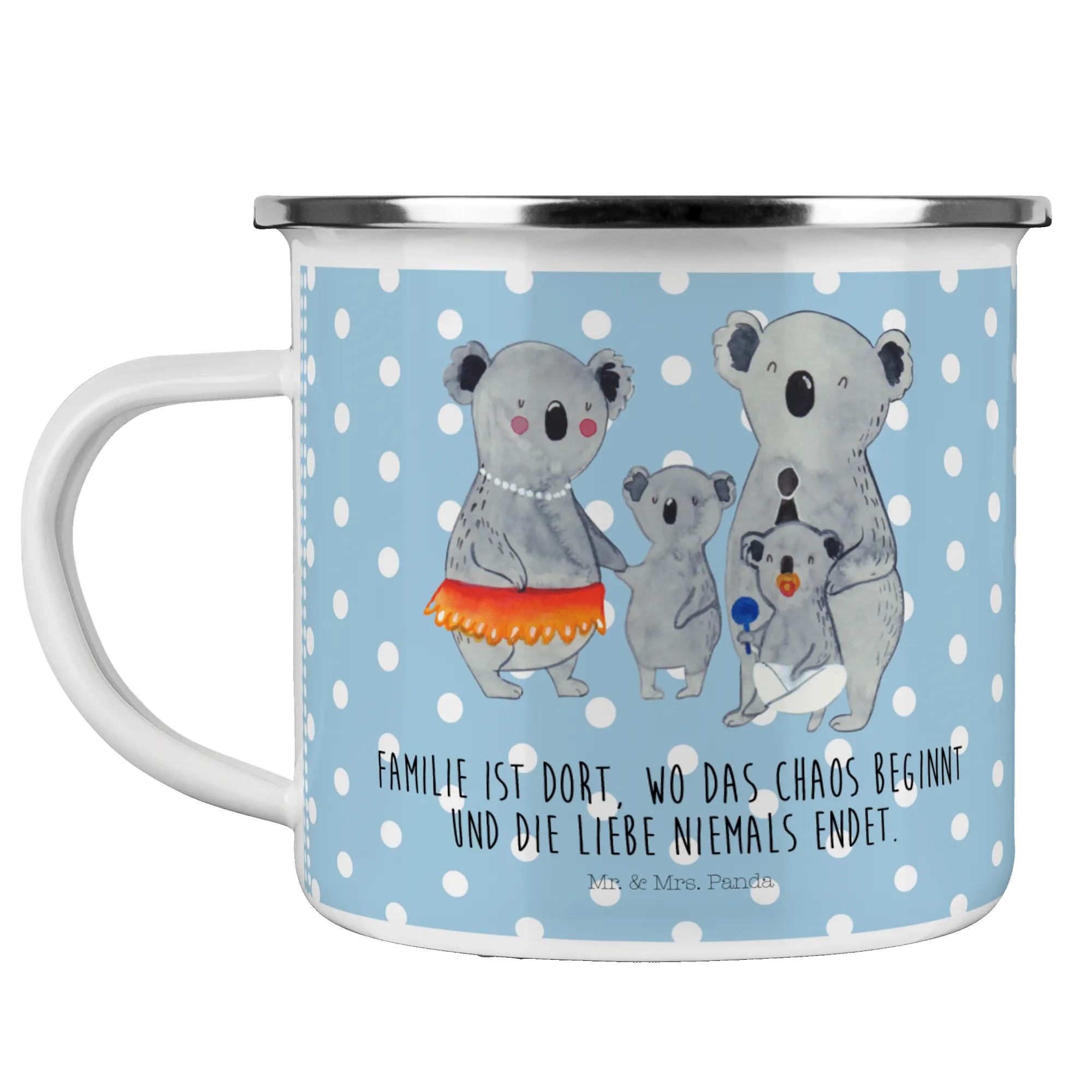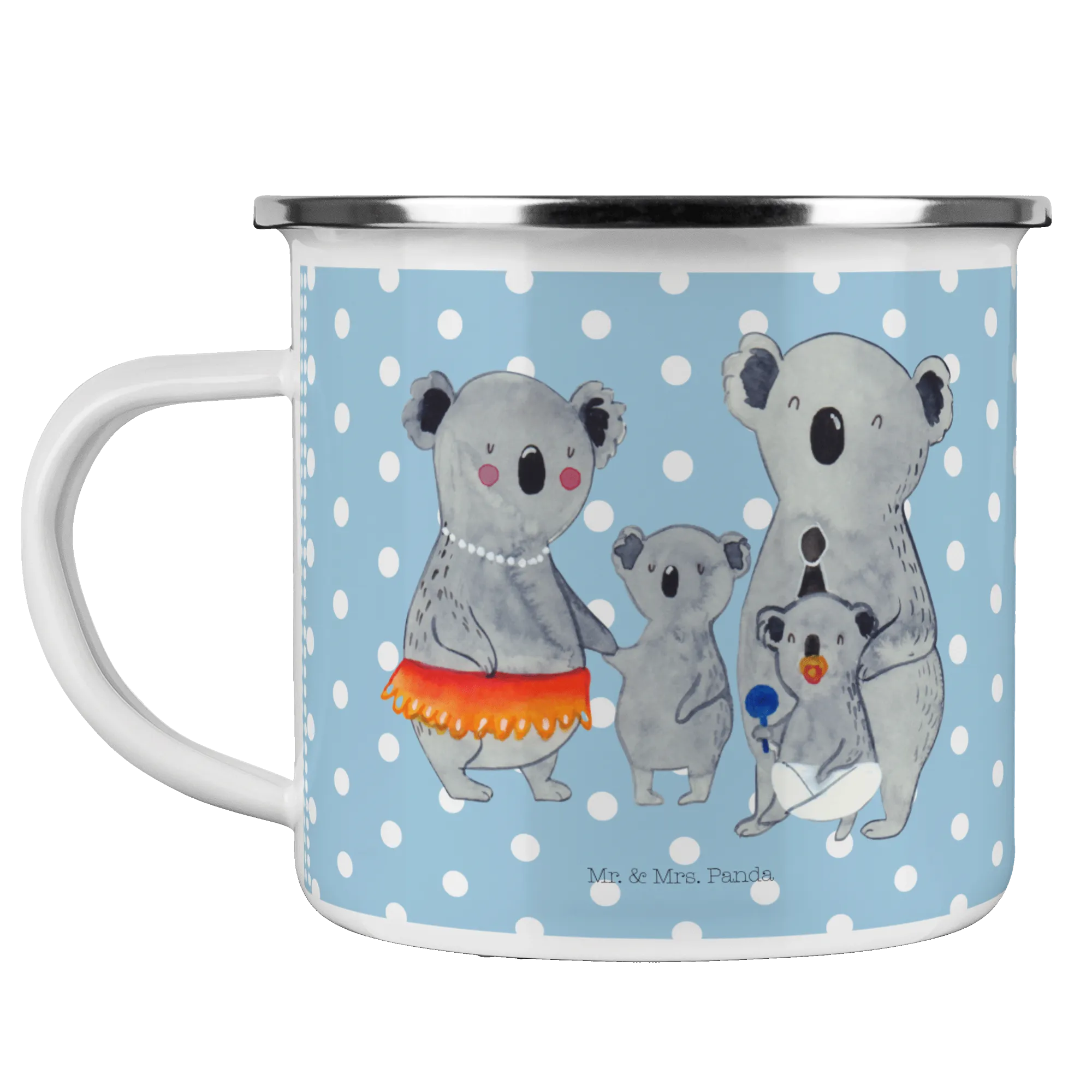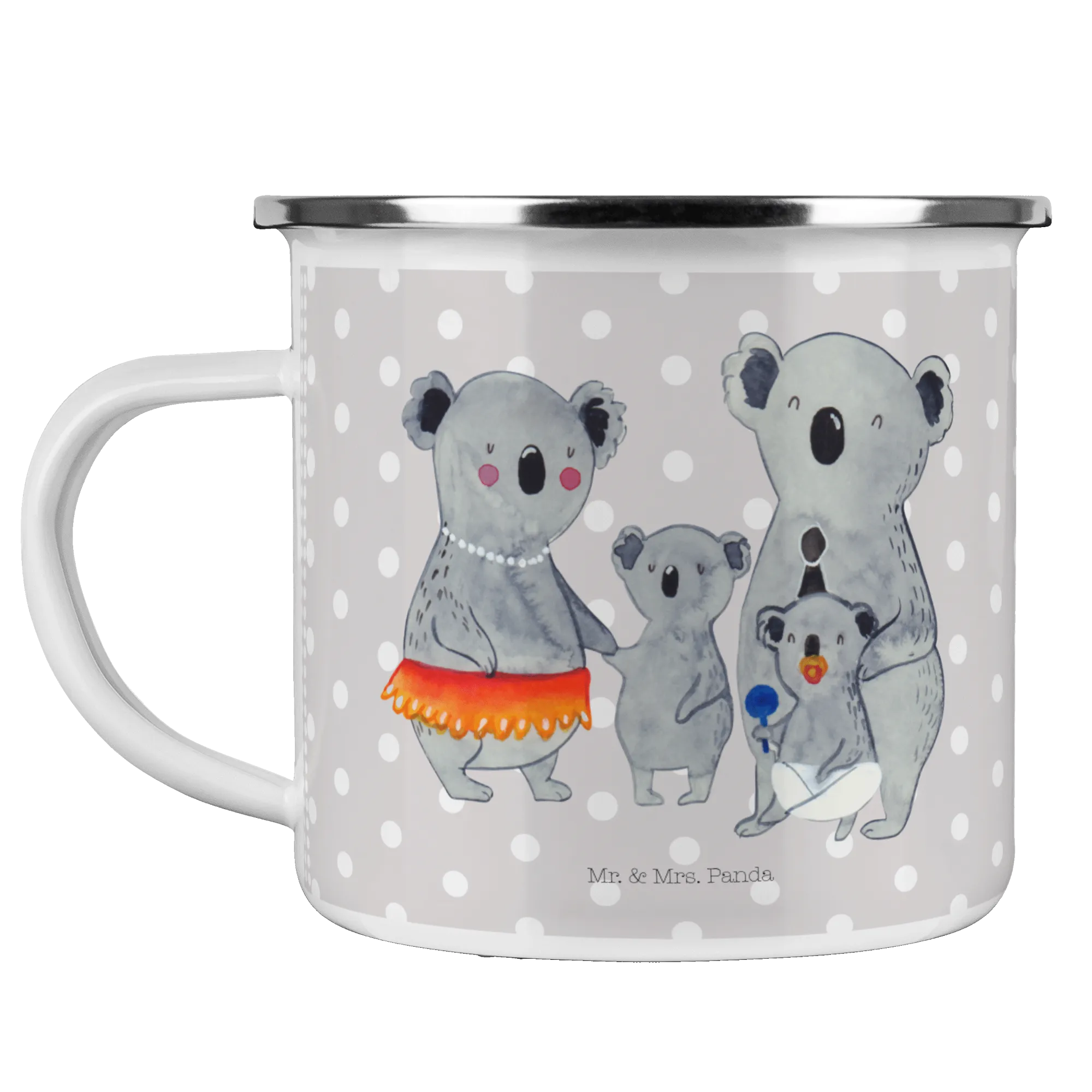 Entdecke die perfekte Camping Emaille Tasse von Mr. & Mrs. Panda mit liebevollem Koala-Motiv, die sich ideal für alle Outdoor-Enthusiasten und Familien eignet!