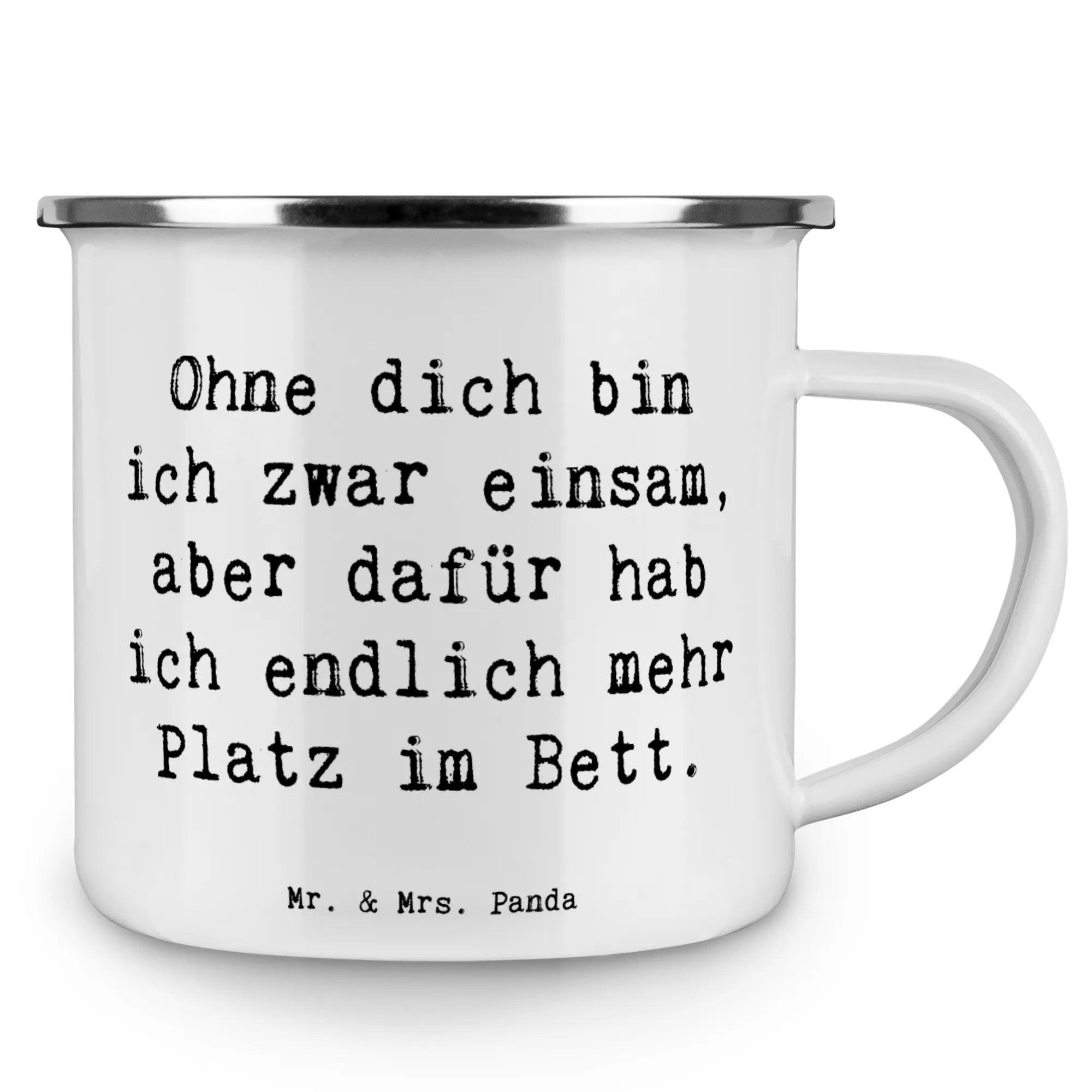 Camping Emaille Tasse Spruch Liebeskummer Platz im Bett – Mr. & Mrs. Panda