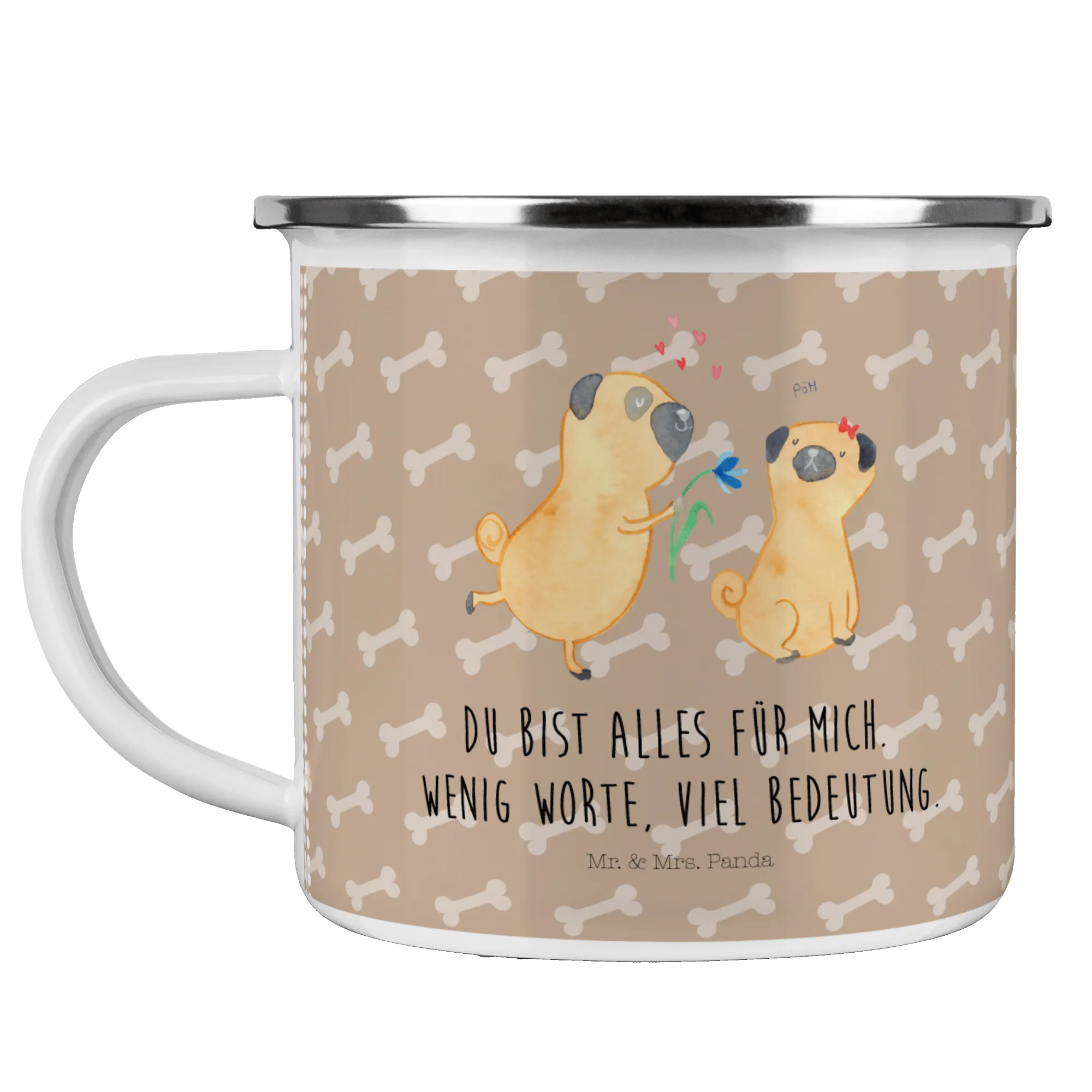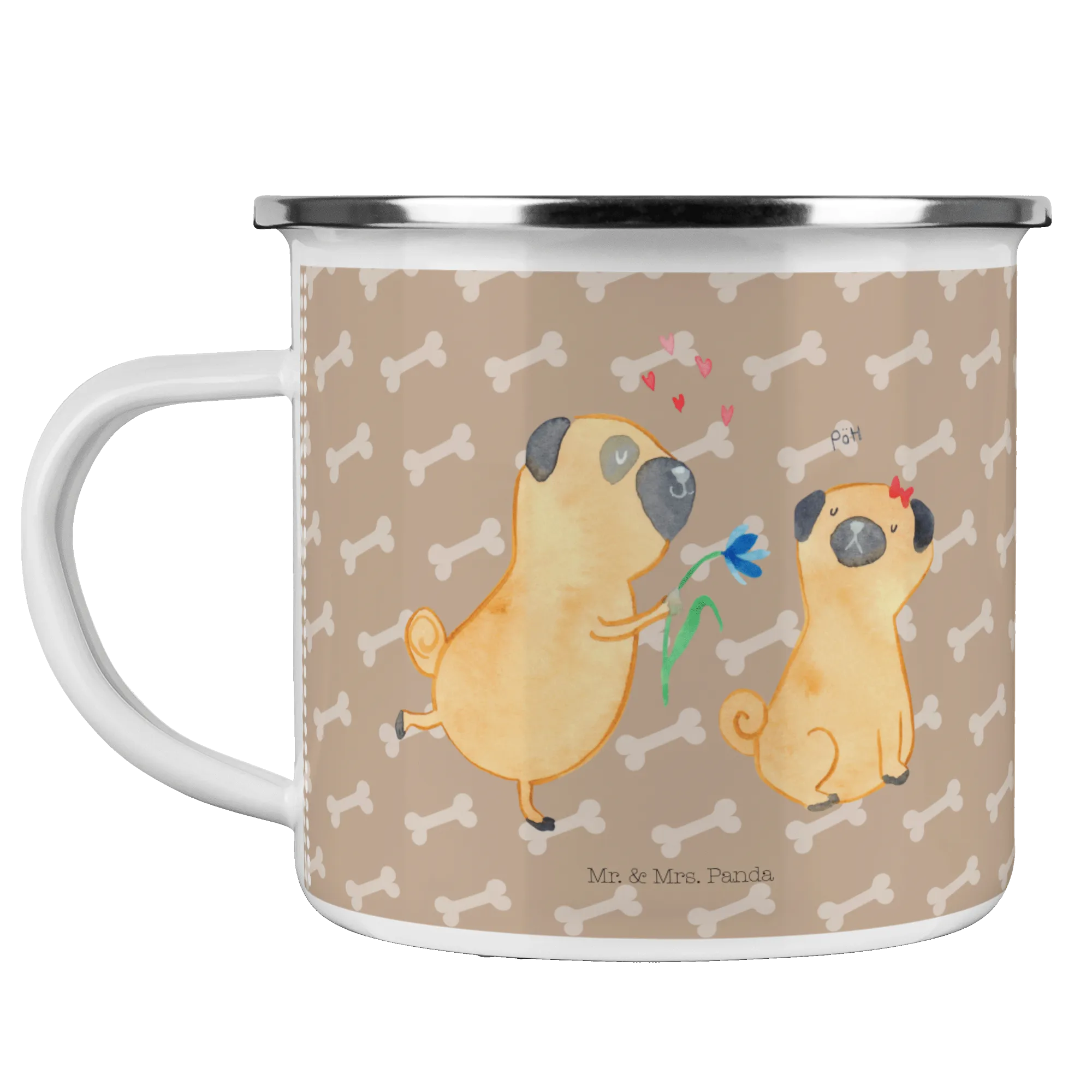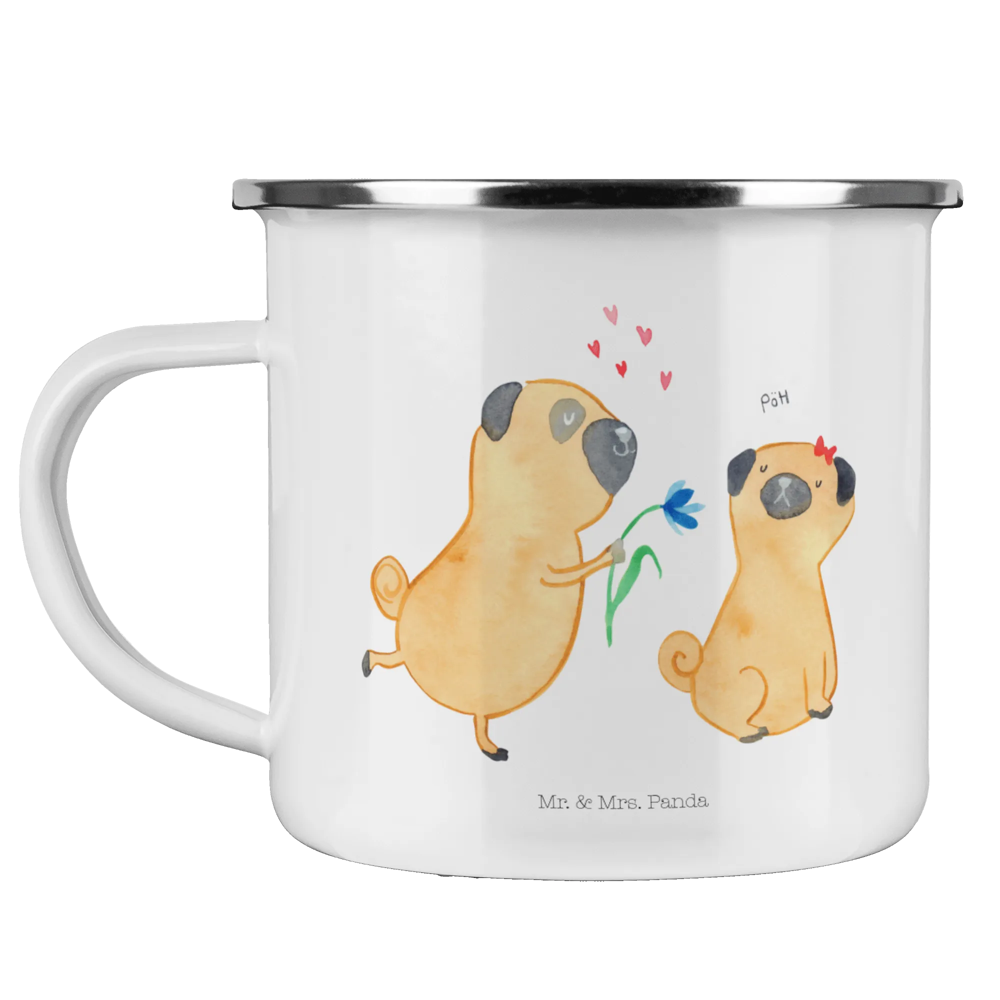 Camping Emaille Tasse Mops Verliebt - mit Spruch - Hundeglück