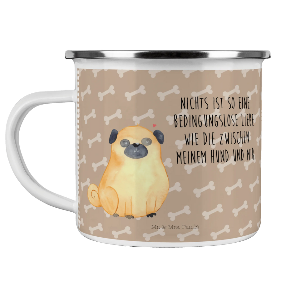 Camping Emaille Tasse Mops - mit Spruch - Hundeglück