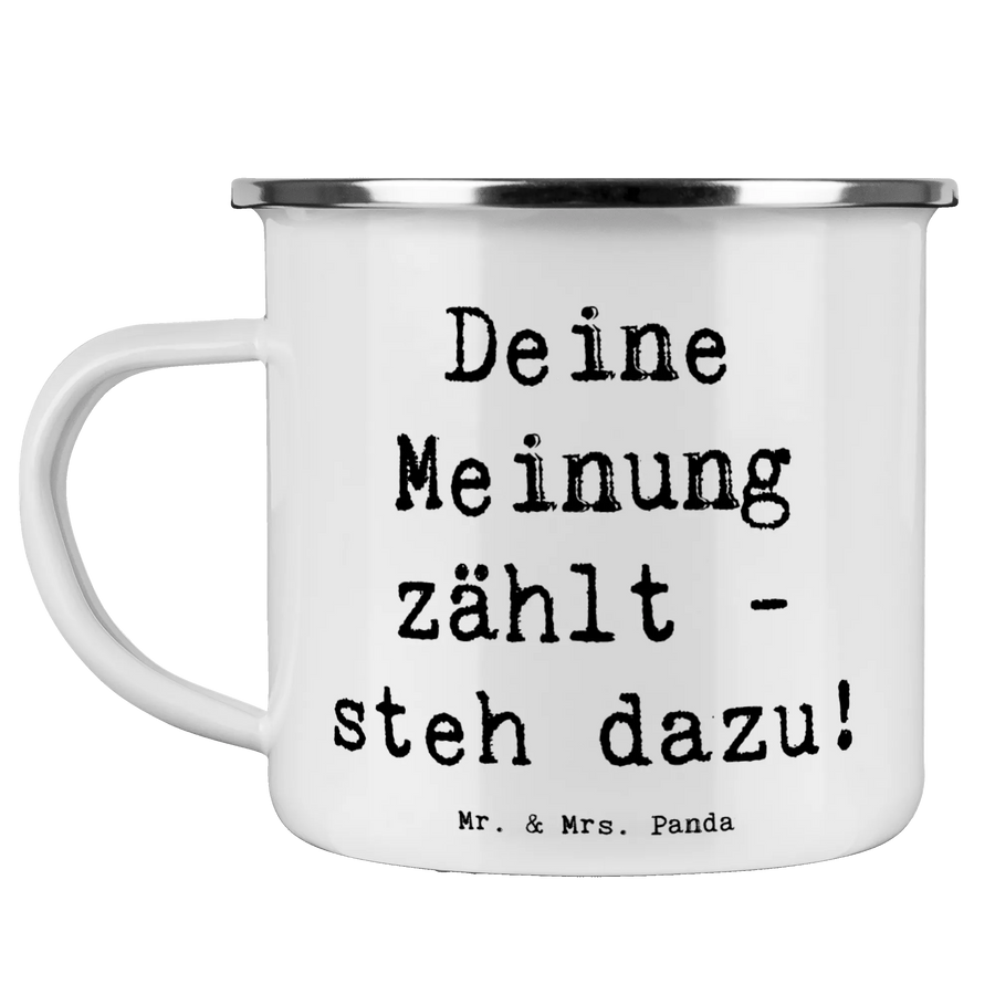 Camping Emaille Tasse Spruch Mutig zu Meinungen – Mr. & Mrs. Panda