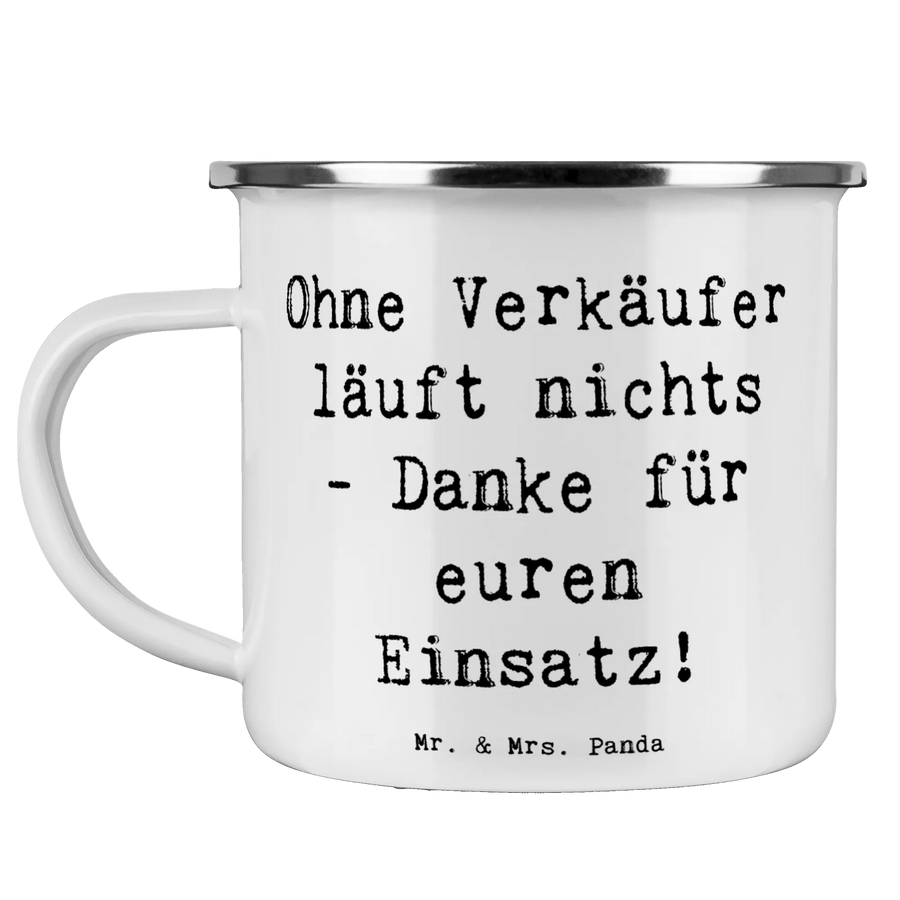 Camping Emaille Tasse Spruch Verkäufer Helden