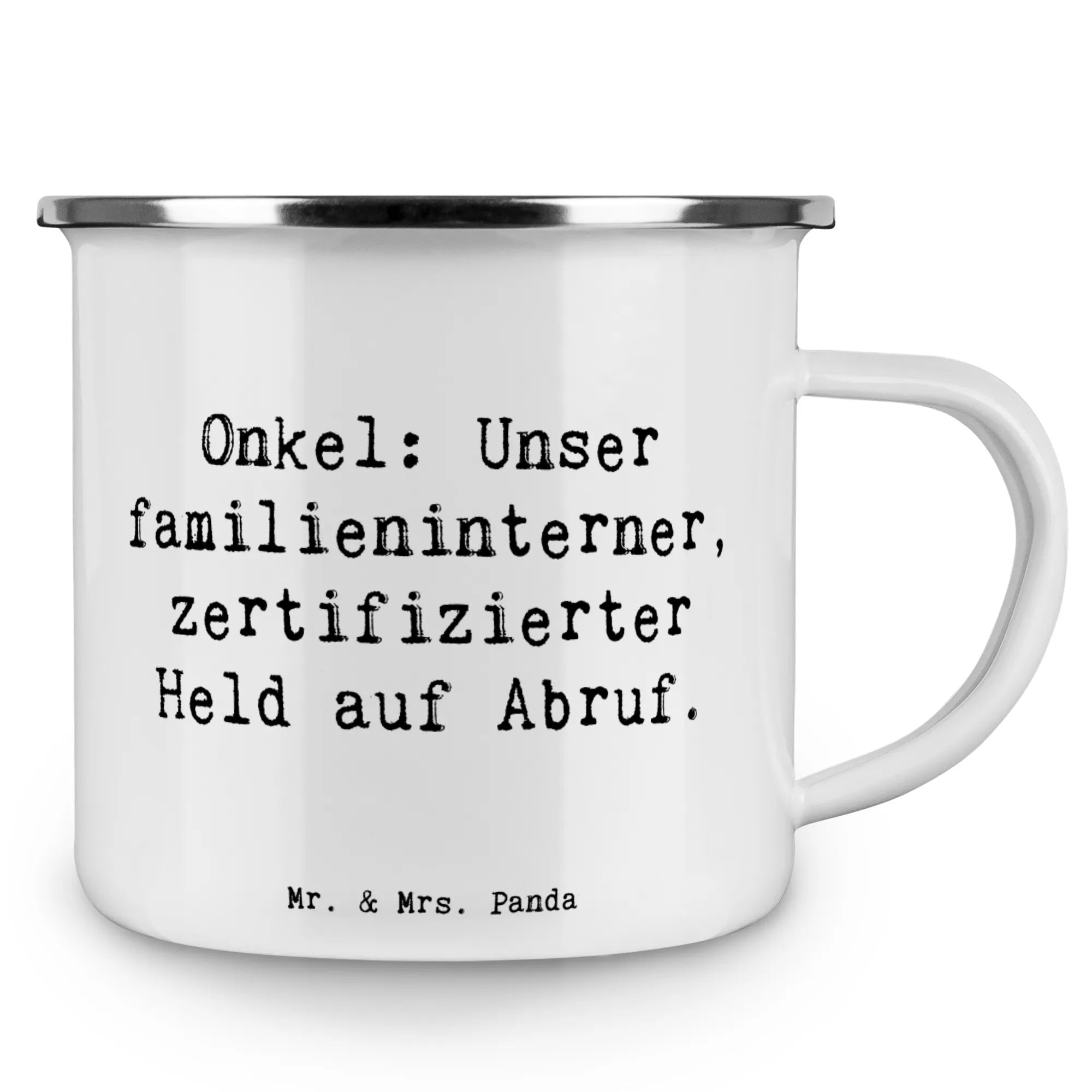 Die Camping Emaille Tasse "Onkel" von Mr. & Mrs. Panda ist das perfekte Geschenk für alle Onkel, die in der Familie eine besondere Rolle spielen. Diese wunderschöne und beständige Metalltasse mit einem charmanten Spruch – "Onkel: Unser familieninterner, zertifizierter Held auf Abruf." – eignet sich nicht nur für einen heißen Kaffee oder einen erfrischenden Tee beim Camping, sondern auch für all jene Momente, in denen man einen lieben Menschen überrascht.