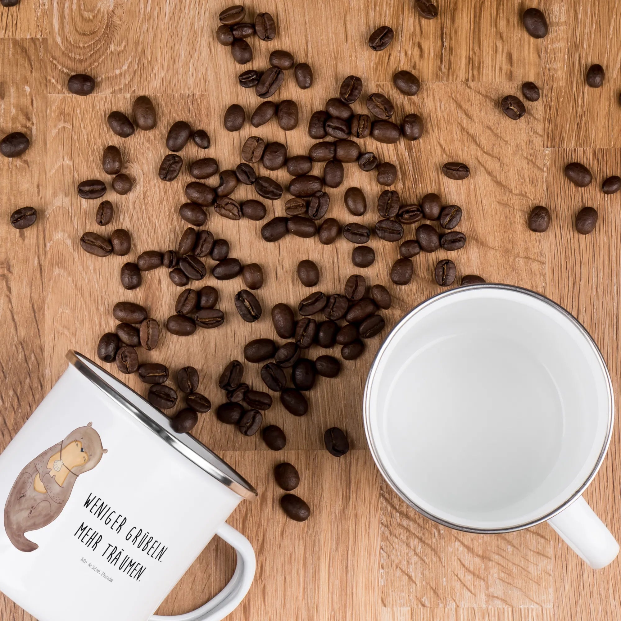 Die wunderschöne und beständige Camping Emaille Tasse "Otter mit Muschelmedaillon" von Mr. & Mrs. Panda ist das perfekte Geschenk für Naturliebhaber und Campingfreunde. Mit ihrem entzückenden Motiv eines süßen Otters, der stolz eine Muschelheizkette um seinen Hals trägt, bringt diese Tasse ein Stück Natur direkt in deine Hände. Sie erinnert uns daran, die kleinen Dinge im Leben zu genießen und lädt dazu ein, weniger zu grübeln und mehr zu träumen.