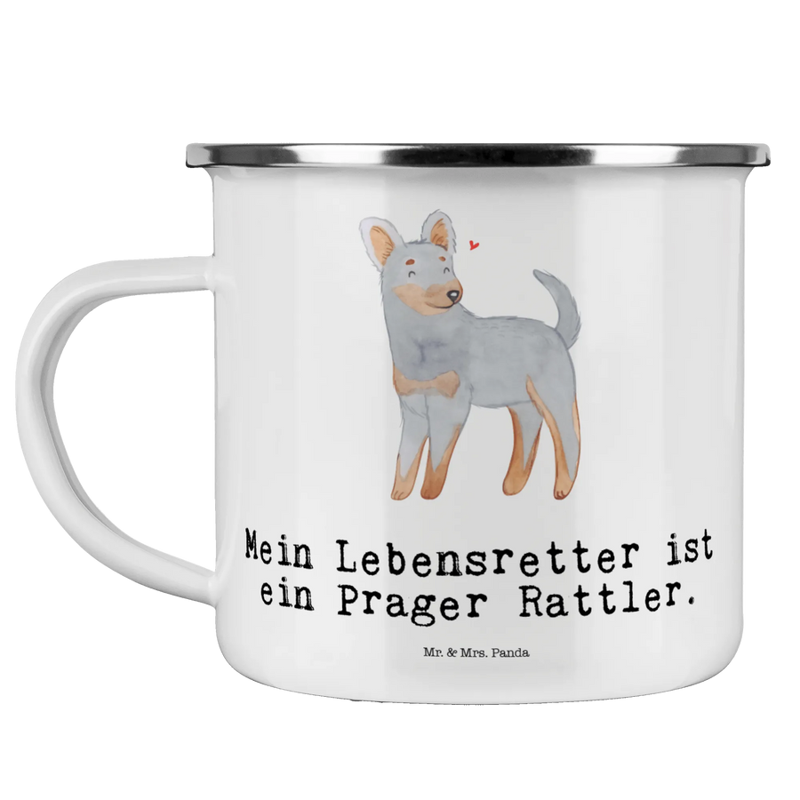 Die Camping Emaille Tasse "Mein Lebensretter ist ein Prager Rattler" von Mr. & Mrs. Panda ist das perfekte Geschenk für Hundeliebhaber und Naturfreunde! Diese Tasse ist nicht nur optisch ein Highlight mit ihrem charmant handgezeichneten Prager Rattler-Motiv, sondern auch unglaublich praktisch für all deine Outdoor-Abenteuer.