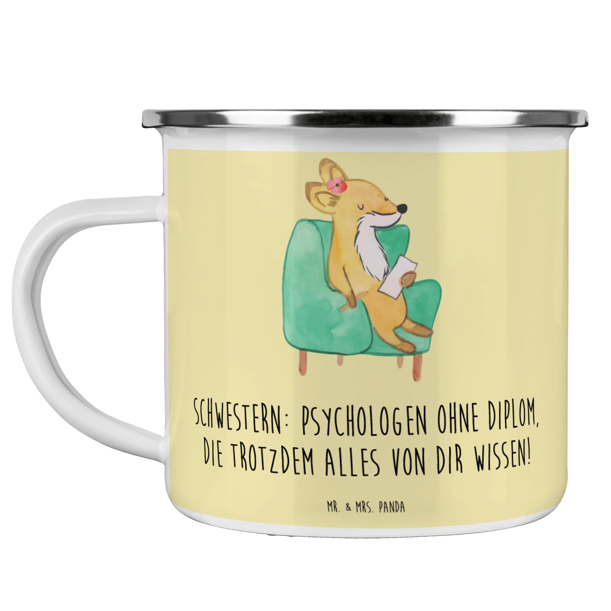 Du suchst nach einem perfekten Geschenk für Deine Schwester? Unsere Camping Emaille Tasse mit dem liebevollen Motiv "Schwester" von Mr. & Mrs. Panda ist die ideale Wahl! Diese außergewöhnliche Tasse kombiniert Funktionalität und Emotion auf die schönste Weise. Mit ihrem charmanten Spruch "Schwestern: Psychologen ohne Diplom, die trotzdem alles von dir wissen!" fängt sie nicht nur die Freude des gemeinsamen Zusammenseins ein, sondern bringt auch ein Lächeln in jeden Moment.