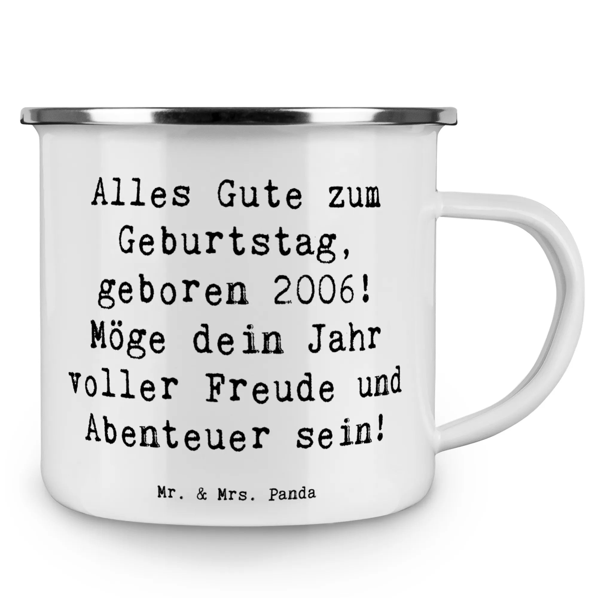 Du bist auf der Suche nach dem perfekten Geschenk für einen speziellen Menschen, der 2006 geboren wurde? Dann ist unsere wunderschöne Camping Emaille Tasse von Mr. & Mrs. Panda genau das Richtige für dich! Diese Tasse, die mit dem liebevollen Slogan "Alles Gute zum Geburtstag, geboren 2006! Möge dein Jahr voller Freude und Abenteuer sein!" bedruckt ist, ist nicht nur ein praktisches Utensil, sondern auch ein ganz besonderes Erinnerungsstück für jedes Geburtstagskind.