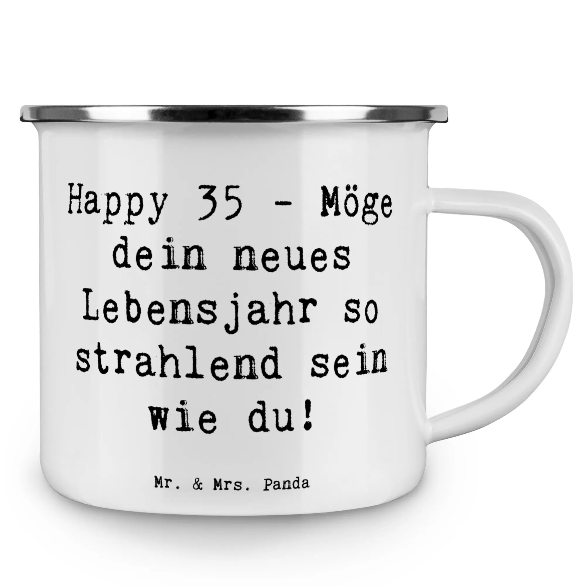 Die Camping Emaille Tasse zum 35. Geburtstag von Mr. & Mrs. Panda ist das perfekte Geschenk für alle, die die Natur lieben und ihren besonderen Tag feiern möchten! Diese wunderschöne und beständige Emaille Tasse ist nicht nur superpraktisch, sondern auch ein wahres Highlight für alle Camping- und Outdoor-Fans. Mit einem köstlichen heißen Kaffee oder einem erfrischenden Tee kannst du deine Ausflüge in die Natur noch mehr genießen.