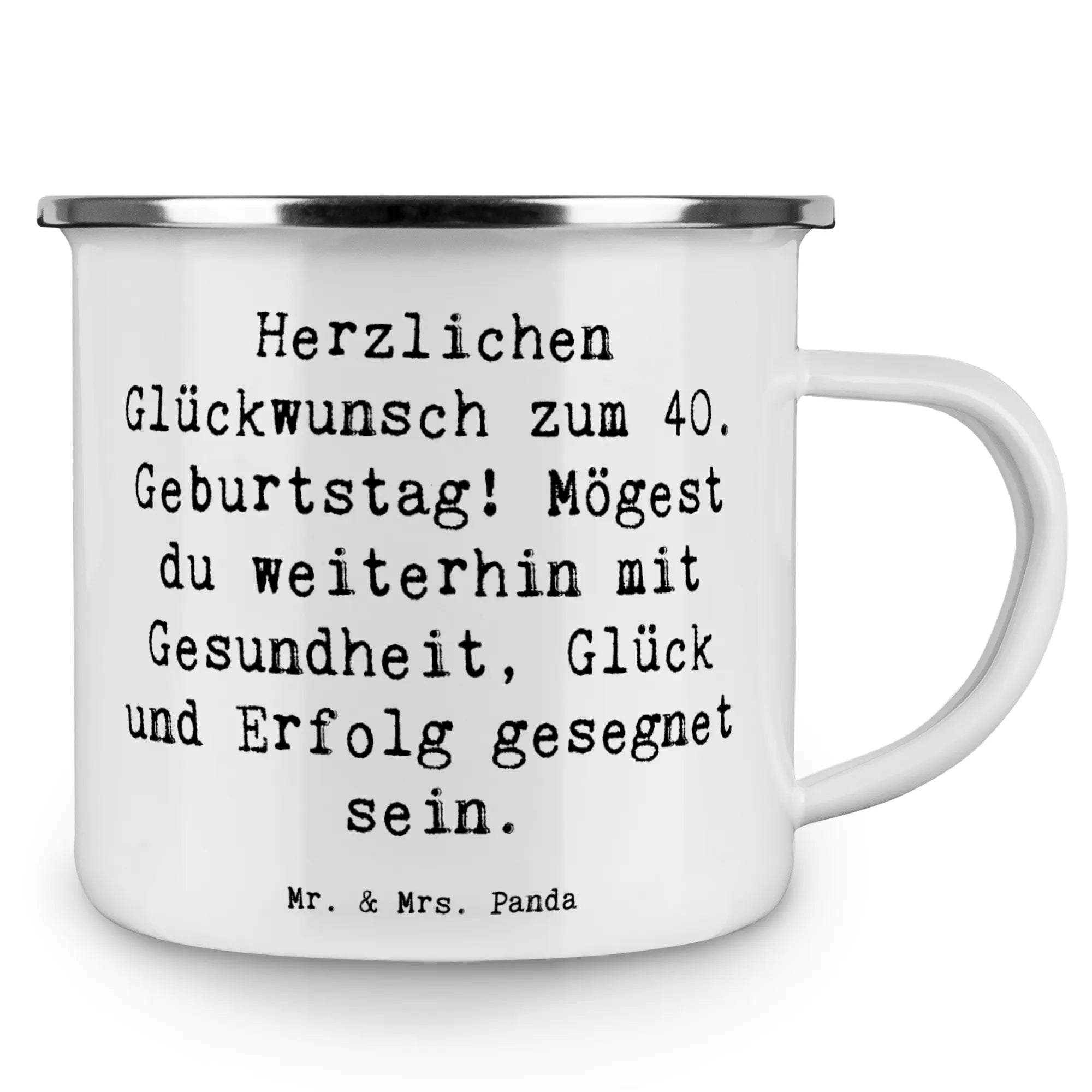 Die perfekte Camping Emaille Tasse zum 40. Geburtstag ist viel mehr als nur ein Trinkgefäß – sie ist ein liebevolles Geschenk für alle Abenteuerlustigen und Naturliebhaber! Mit einem niedlichen Design und dem herzlichen Spruch 'Herzlichen Glückwunsch zum 40. Geburtstag! Mögest du weiterhin mit Gesundheit, Glück und Erfolg gesegnet sein.' zaubert sie jedem ein Lächeln ins Gesicht. Diese wunderschöne und beständige Camping Emaille Tasse von Mr. & Mrs. Panda wurde speziell für besondere Anlässe wie Geburtstage entworfen.