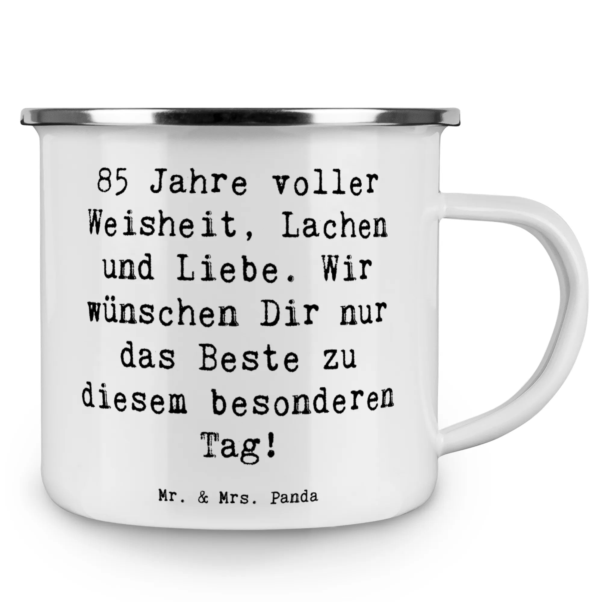 Worauf wartest du noch? Mach den 85. Geburtstag zu etwas ganz Besonderem mit der Camping Emaille Tasse von Mr. & Mrs. Panda! Lass die Feier beginnen und genieße die gemeinsamen Momente mit einem ansprechenden, praktischen Geschenk!