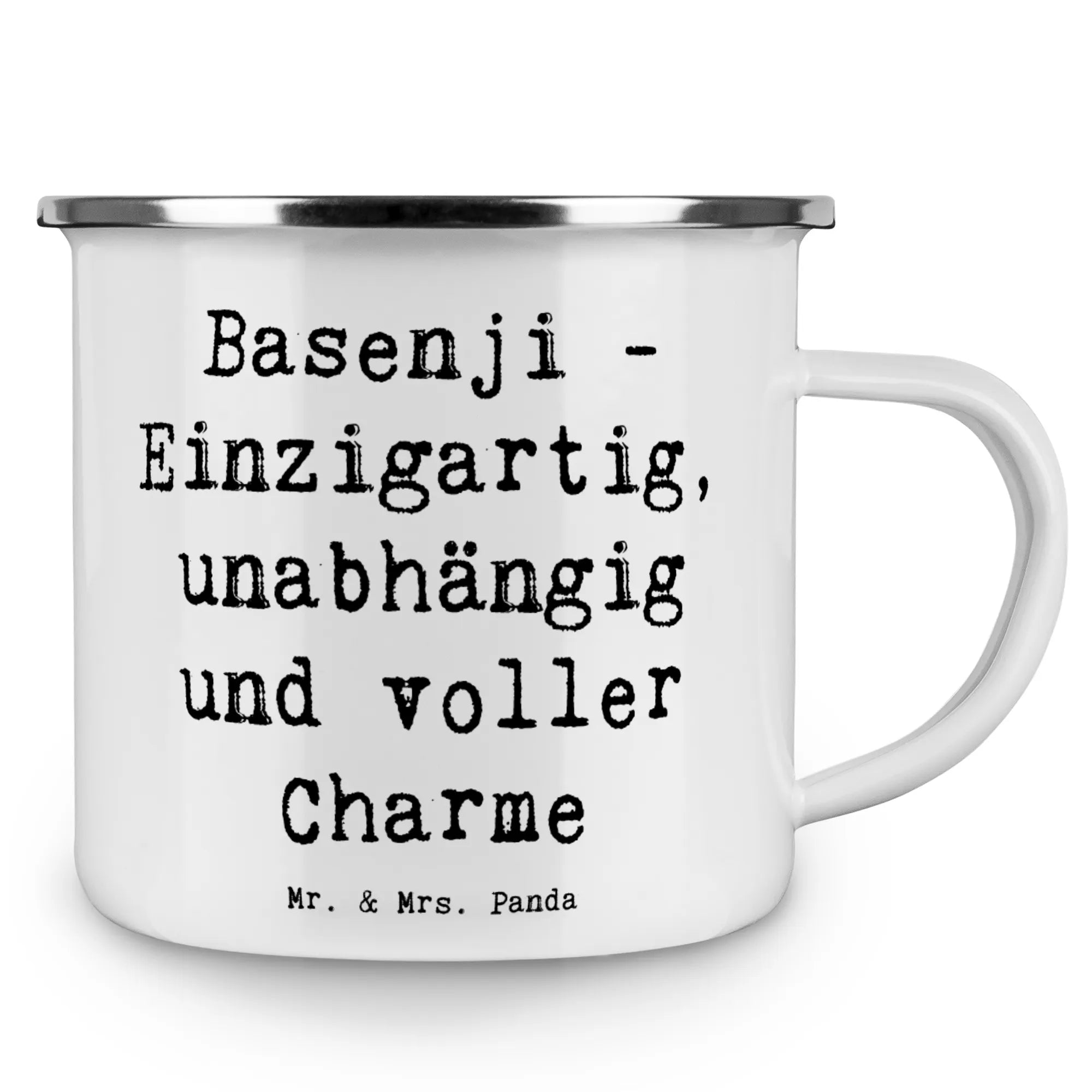 Die Camping Emaille Tasse mit dem charmanten Basenji-Motiv von Mr. & Mrs. Panda ist das perfekte Geschenk für alle Hundefans und Naturliebhaber! Egal, ob du beim Camping, beim Wandern oder einfach nur im Garten entspannst, diese Tasse wird dein neuer treuer Begleiter sein. Mit ihrer schönen Aufschrift "Basenji - Einzigartig, unabhängig und voller Charme" bringt sie einen Hauch von Freude in jeden Outdoor-Moment.