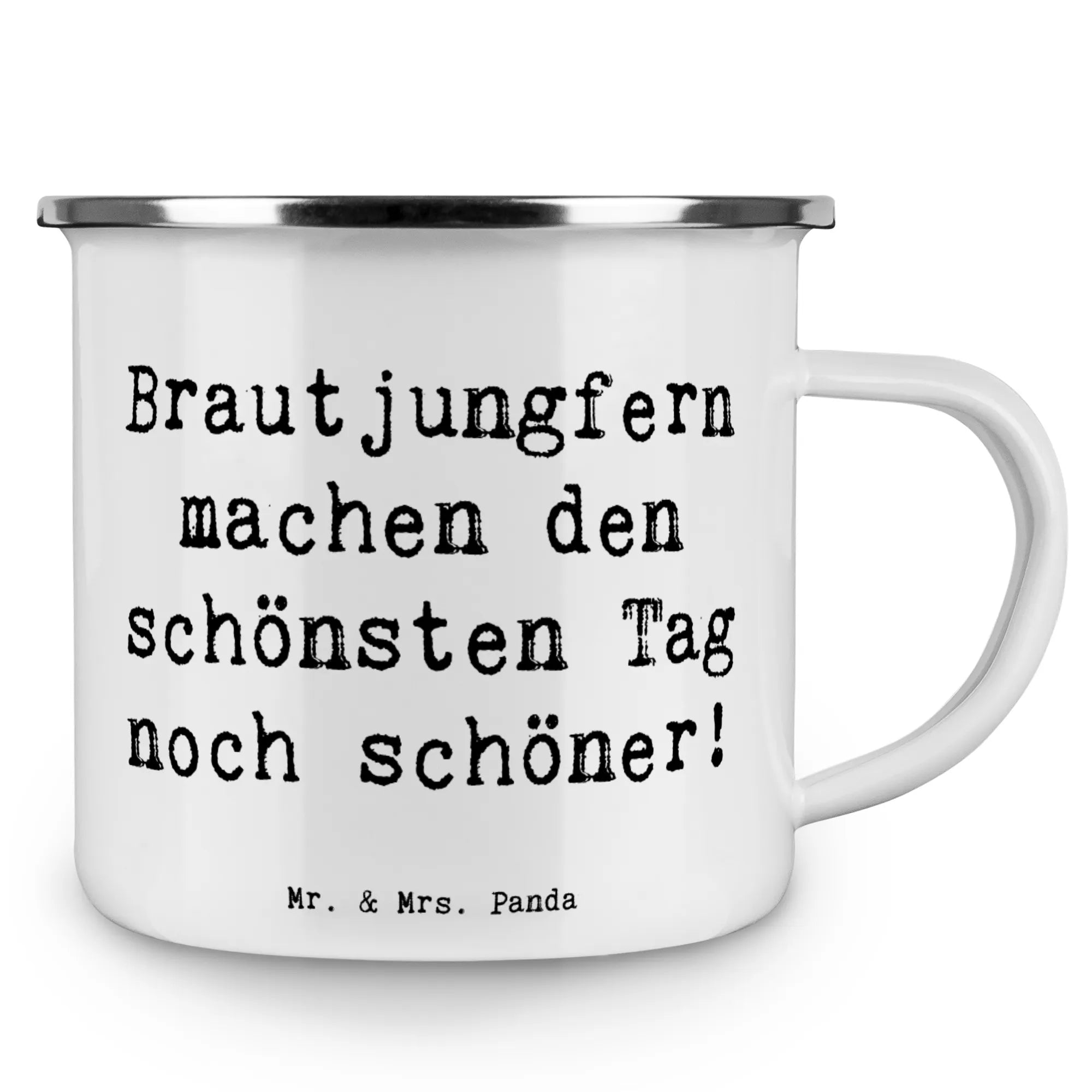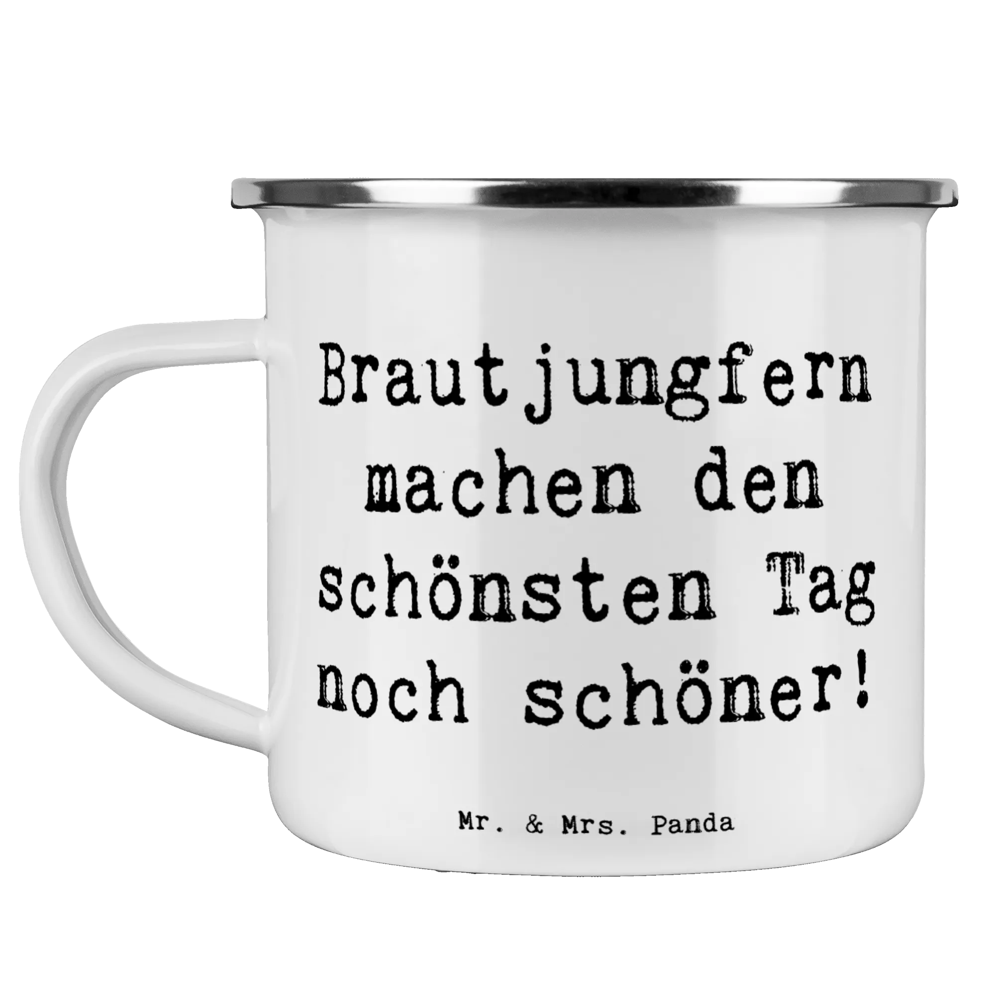 Entdecke unsere wunderschöne Camping Emaille Tasse mit dem liebevollen Motiv 'Brautjungfern machen den schönsten Tag noch schöner!' Diese zauberhafte Tasse ist nicht nur ein praktischer Begleiter für eure Outdoor Abenteuer, sondern auch ein perfektes Geschenk für die Brautjungfern deines Lebens!