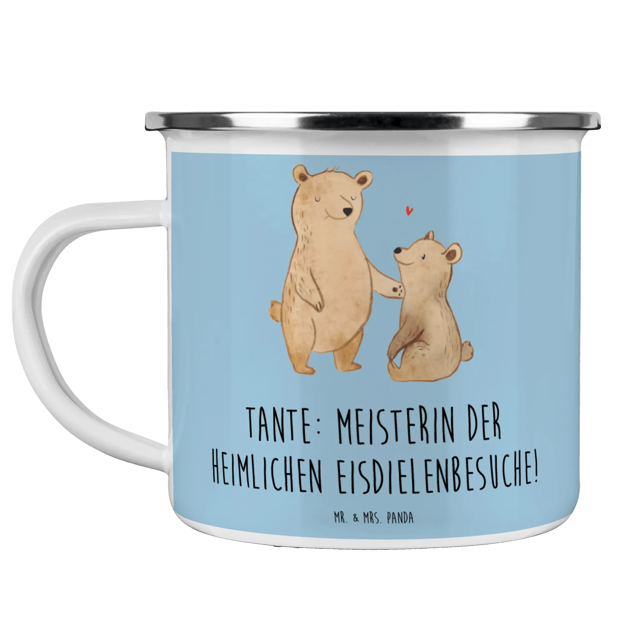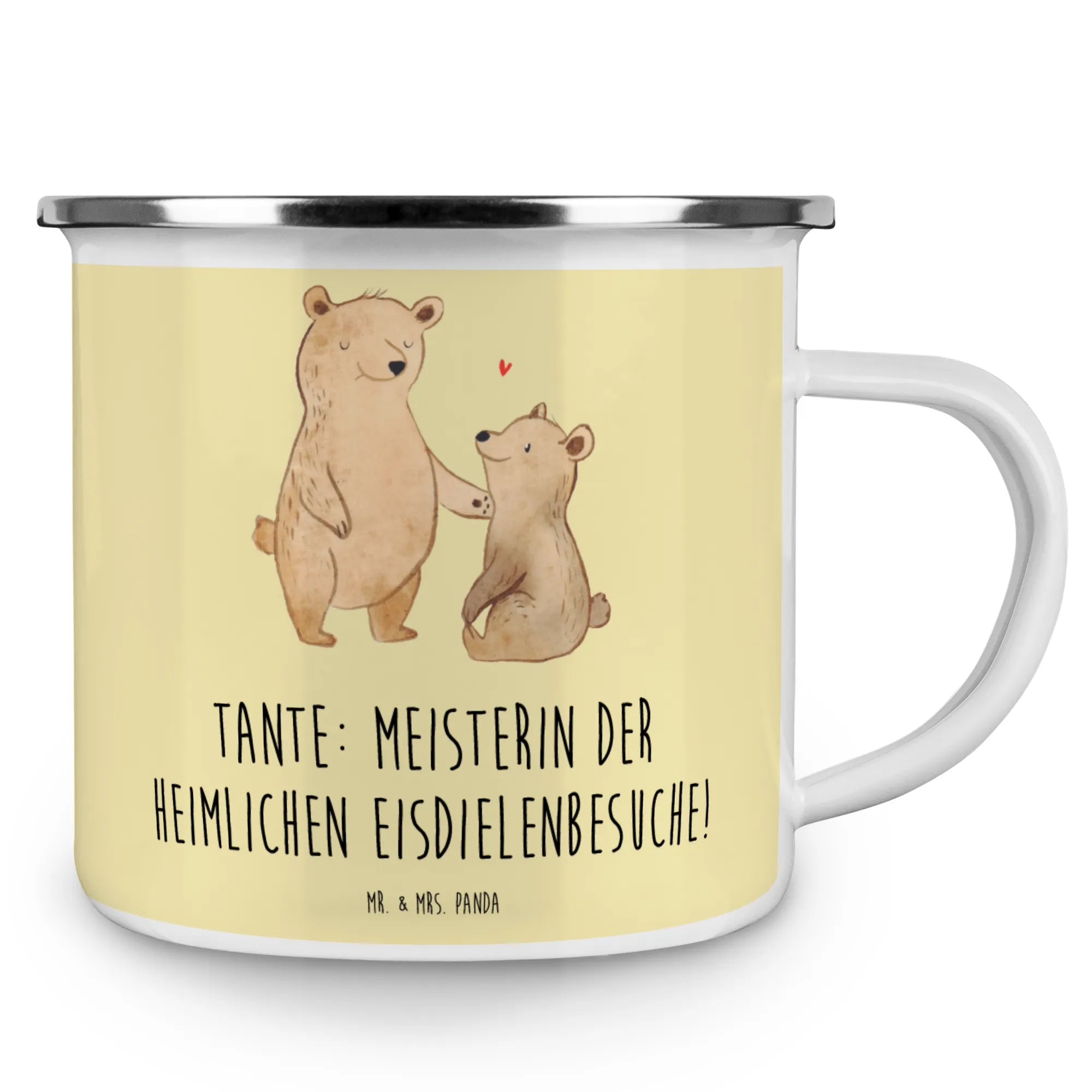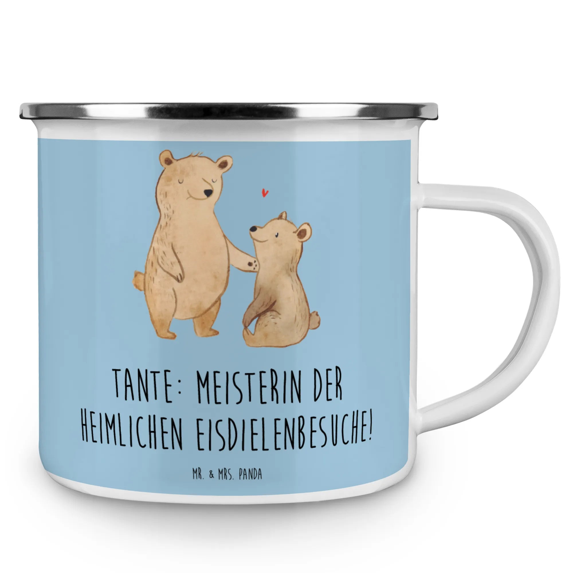 Mache dein Geschenk unvergesslich und lass die Verbindung zu deiner Tante erblühen – mit der bezaubernden Camping Emaille Tasse von Mr. & Mrs. Panda!