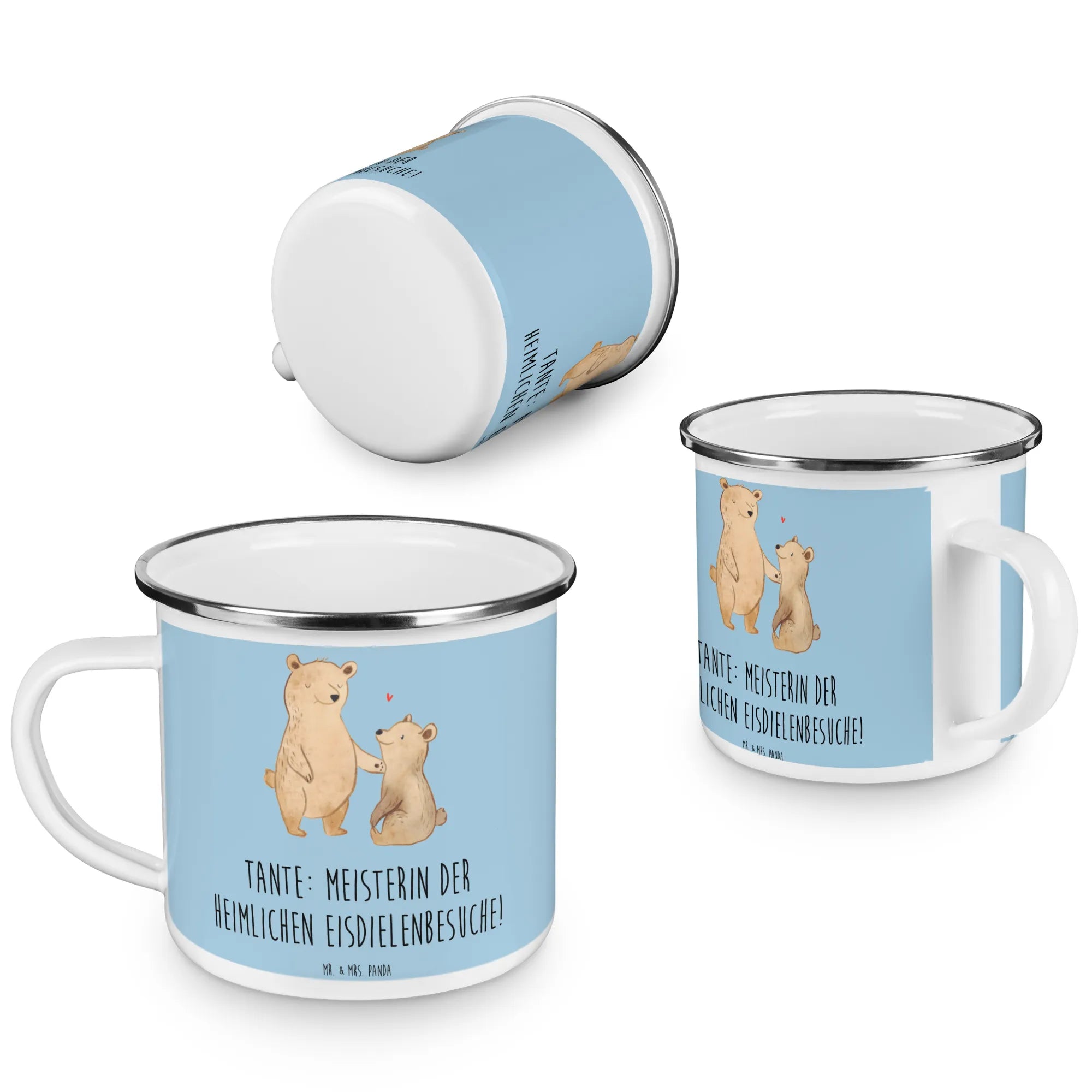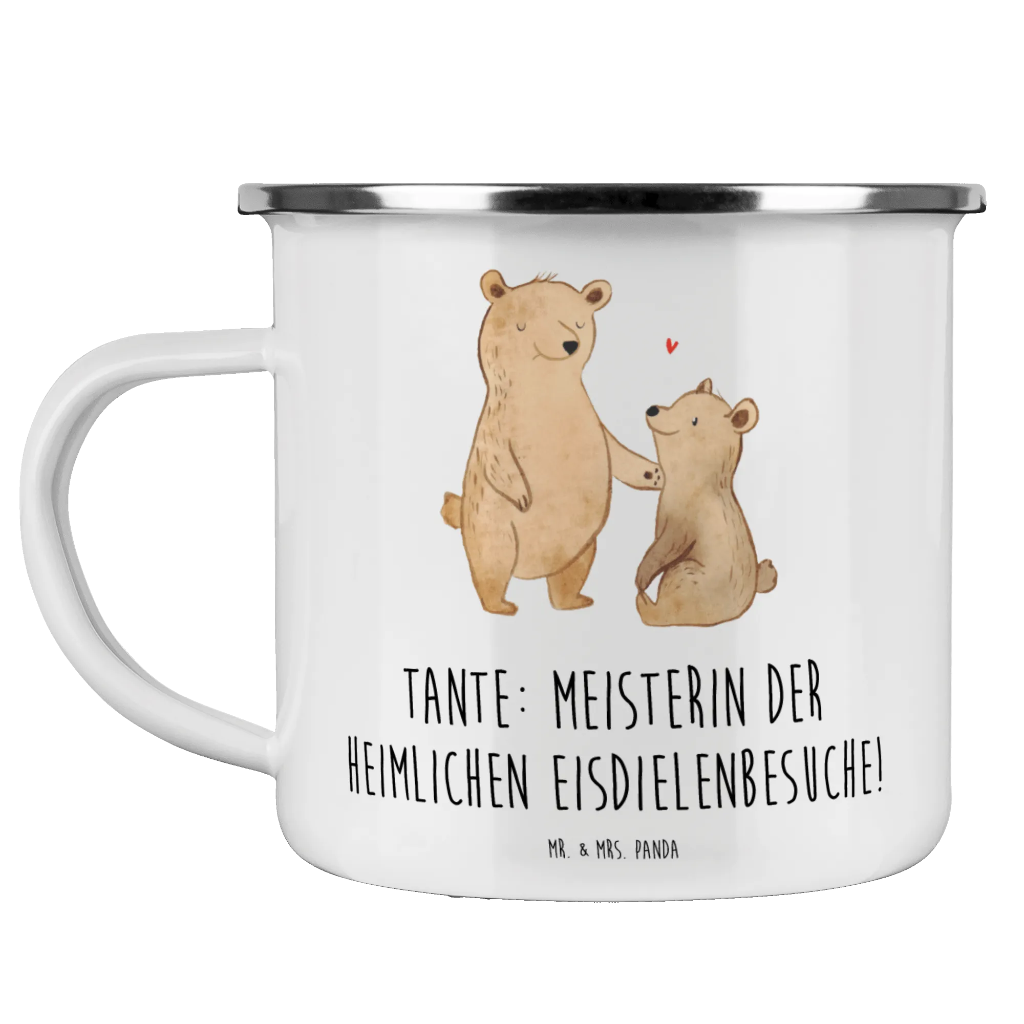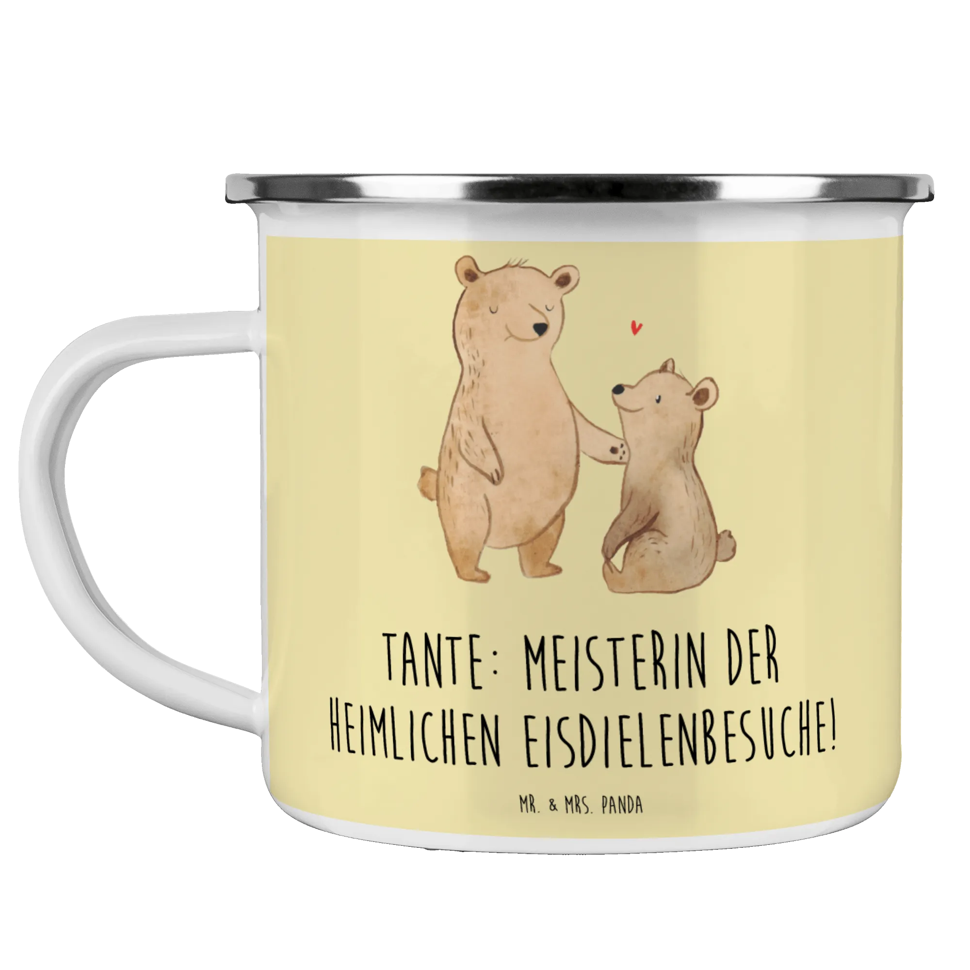 Mache dein Geschenk unvergesslich und lass die Verbindung zu deiner Tante erblühen – mit der bezaubernden Camping Emaille Tasse von Mr. & Mrs. Panda!