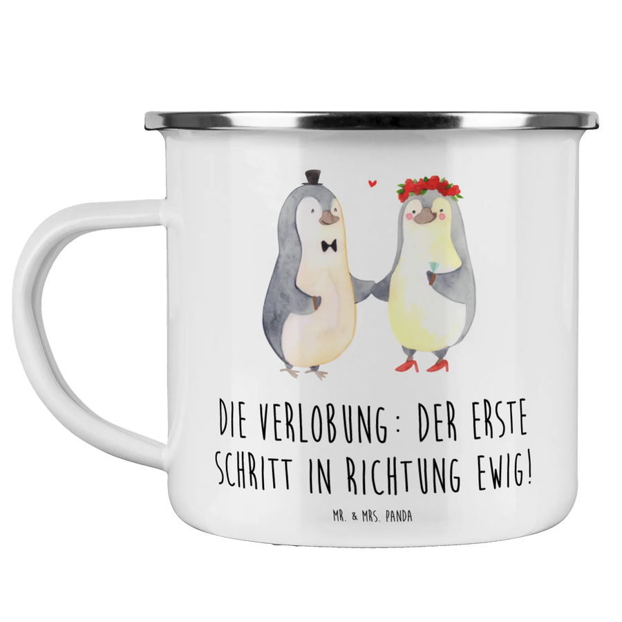Mit der Camping Emaille Tasse "Verlobung" von Mr. & Mrs. Panda bringst Du Erinnerungen und Freude zum Strahlen!