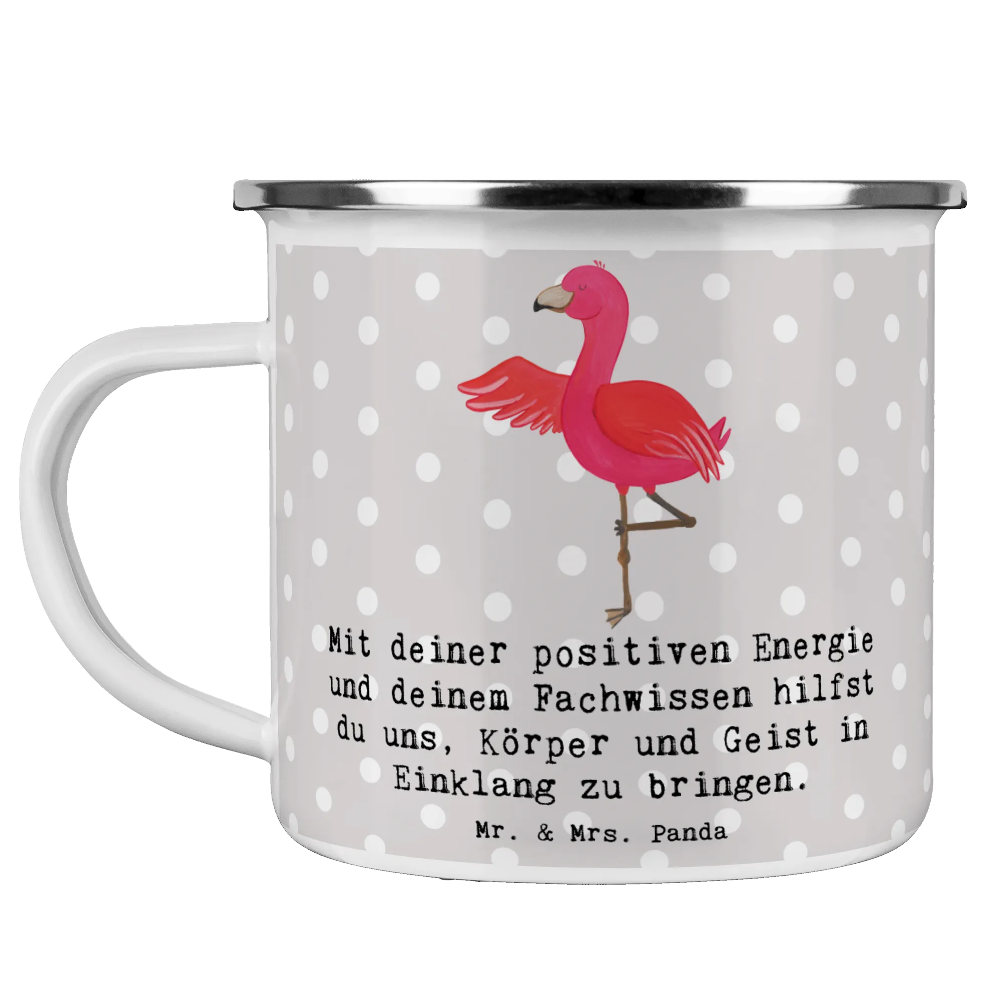 Die Camping Emaille Tasse "Yoga Trainerin" von Mr. & Mrs. Panda ist das perfekte Geschenk für jede Trainerin, die Körper und Geist in Einklang bringt. Schließlich gibt es nichts Schöneres, als die eigene Leidenschaft für Yoga und Fitness mit einem praktischen, stilvollen Accessoire zum Ausdruck zu bringen! Egal, ob zum Dankeschön, als Abschiedsgeschenk oder einfach nur, um Wertschätzung zu zeigen – diese Tasse wird jedes Herz höher schlagen lassen.