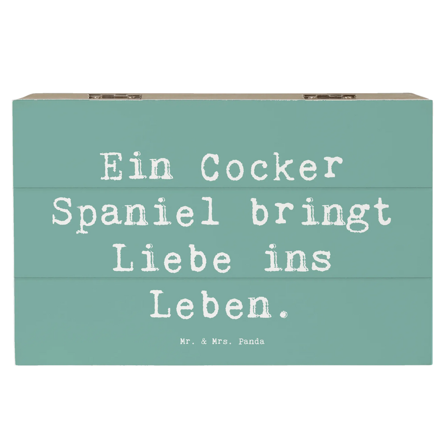 Die wunderschöne Holzkiste von Mr. & Mrs. Panda ist das perfekte Geschenk für alle Hundefreunde, insbesondere für die Fans der charmanten Hunderasse Cocker Spaniel. Mit dem liebevollen Spruch "Ein Cocker Spaniel bringt Liebe ins Leben." ist diese Holzkiste mehr als nur ein Aufbewahrungsort; sie ist ein kleines Stück Herz.