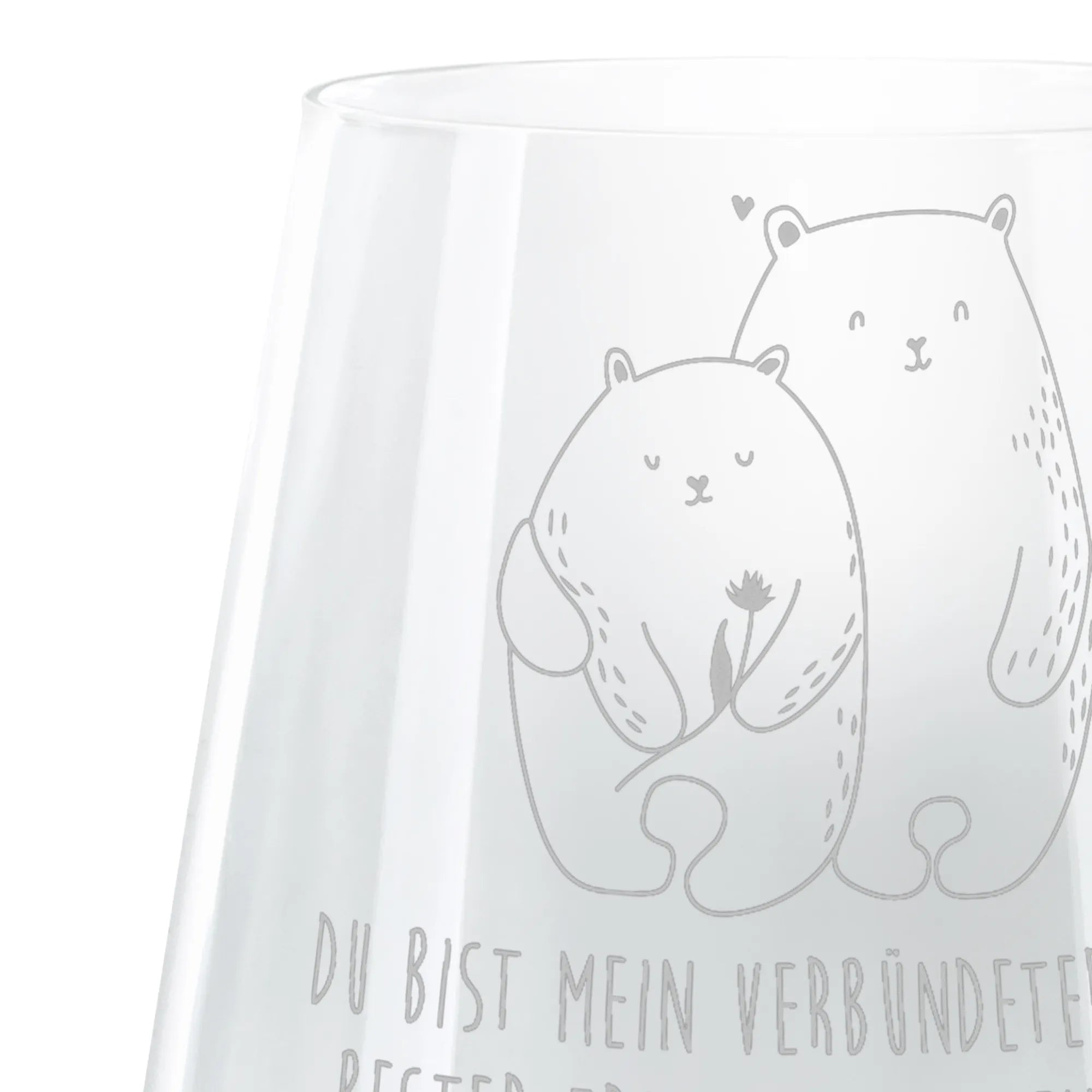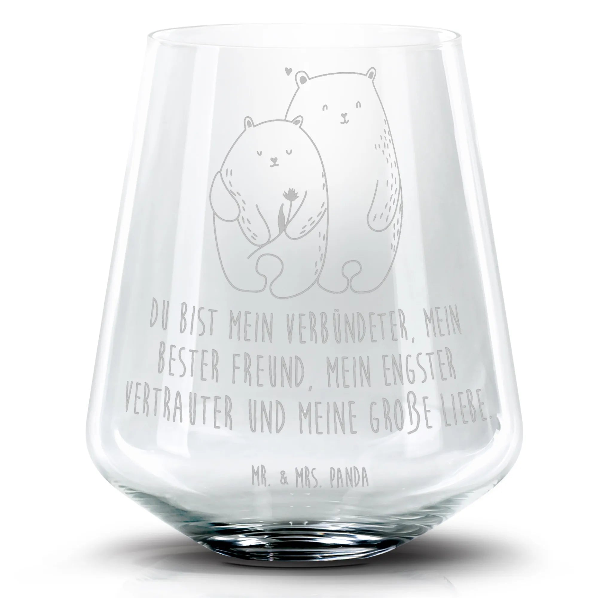 Die beiden verliebten Bären, die ein Herz bilden, bringen eine süße Botschaft voller Wärme und Zuneigung. Mit einer hochwertigen Lasergravur wird der Spruch "Du bist mein Verbündeter, mein bester Freund, mein engster Vertrauter und meine große Liebe" auf das Glas verewigt – so wird jedes Getränk zu einem symbolischen Hochgenuss. Perfekt für romantische Abende, Hochzeiten, Jahrestage oder als liebevolles Geburtstagsgeschenk!