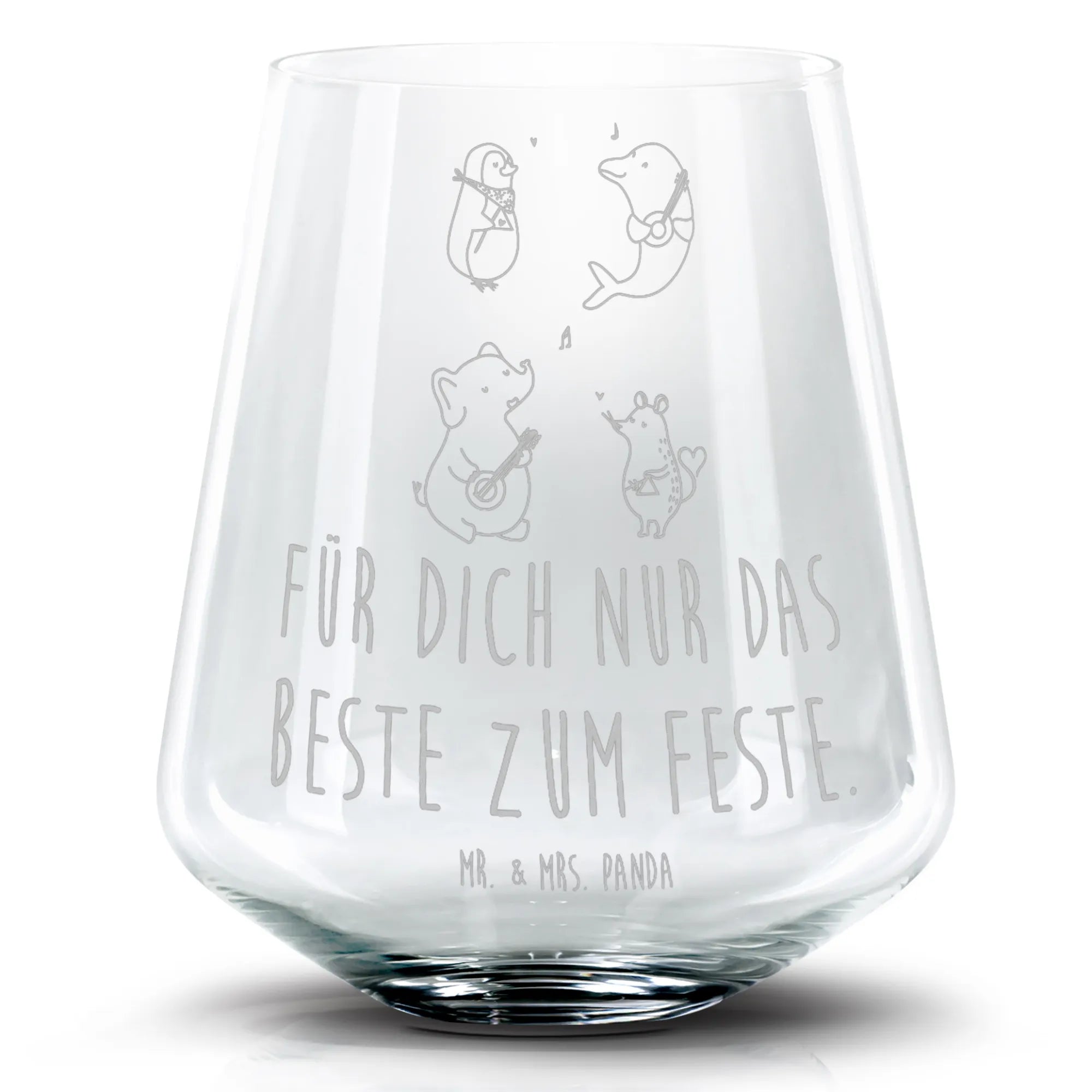 Das bezaubernde Design zeigt eine fröhliche Truppe aus einem Pinguin, einer Maus, einem Elefanten und einem Delfin, die zusammen musizieren und für gute Laune sorgen. Verziert mit der Aufschrift "Für dich nur das Beste zum Feste" ist es mehr als nur ein Glas - es ist ein echter Hingucker und eine Erinnerung an unvergessliche Momente.