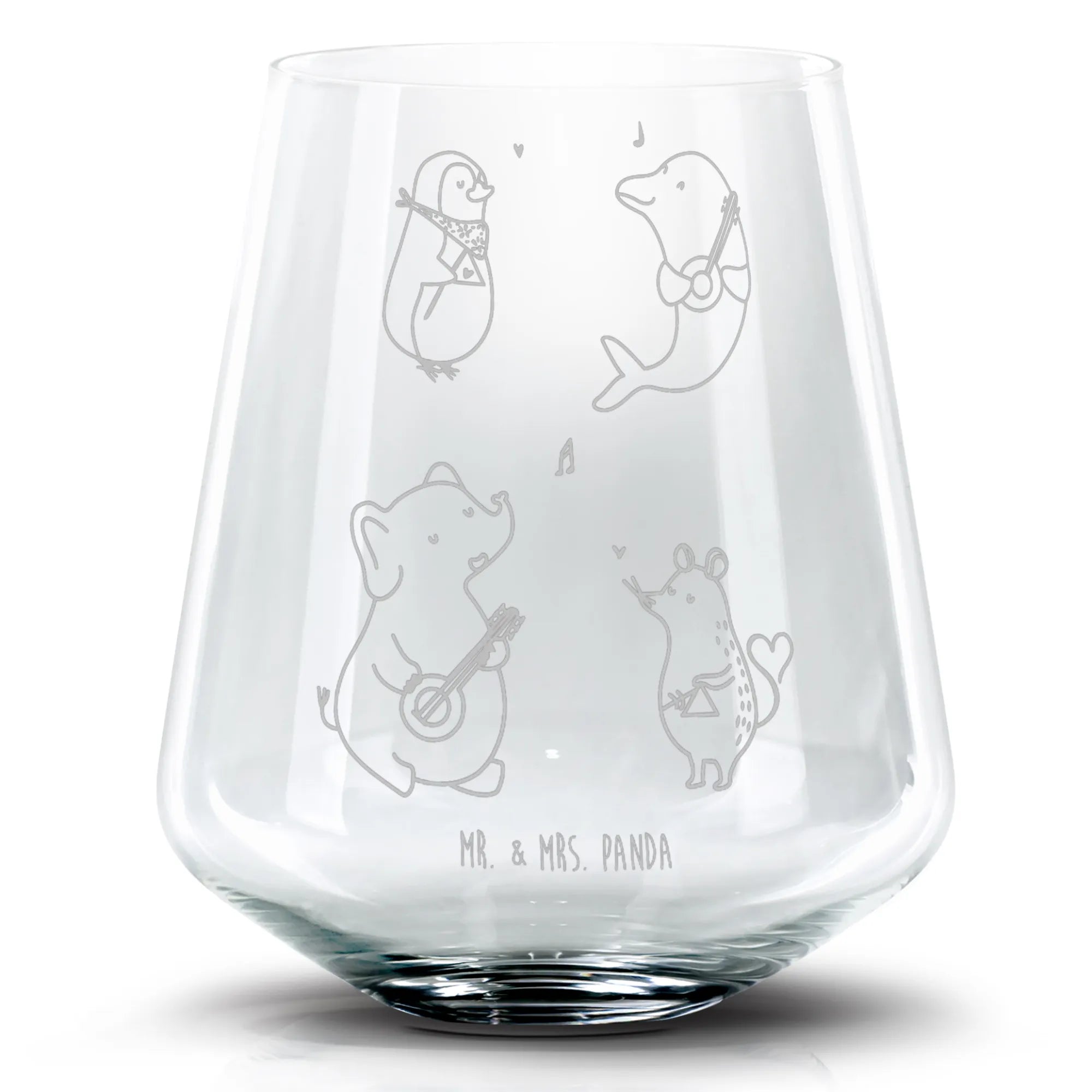 Das wunderschöne Cocktail Glas mit dem Big Band Motiv von Mr. & Mrs. Panda ist das perfekte Geschenk für alle Musikliebhaber und Tierfreunde!
