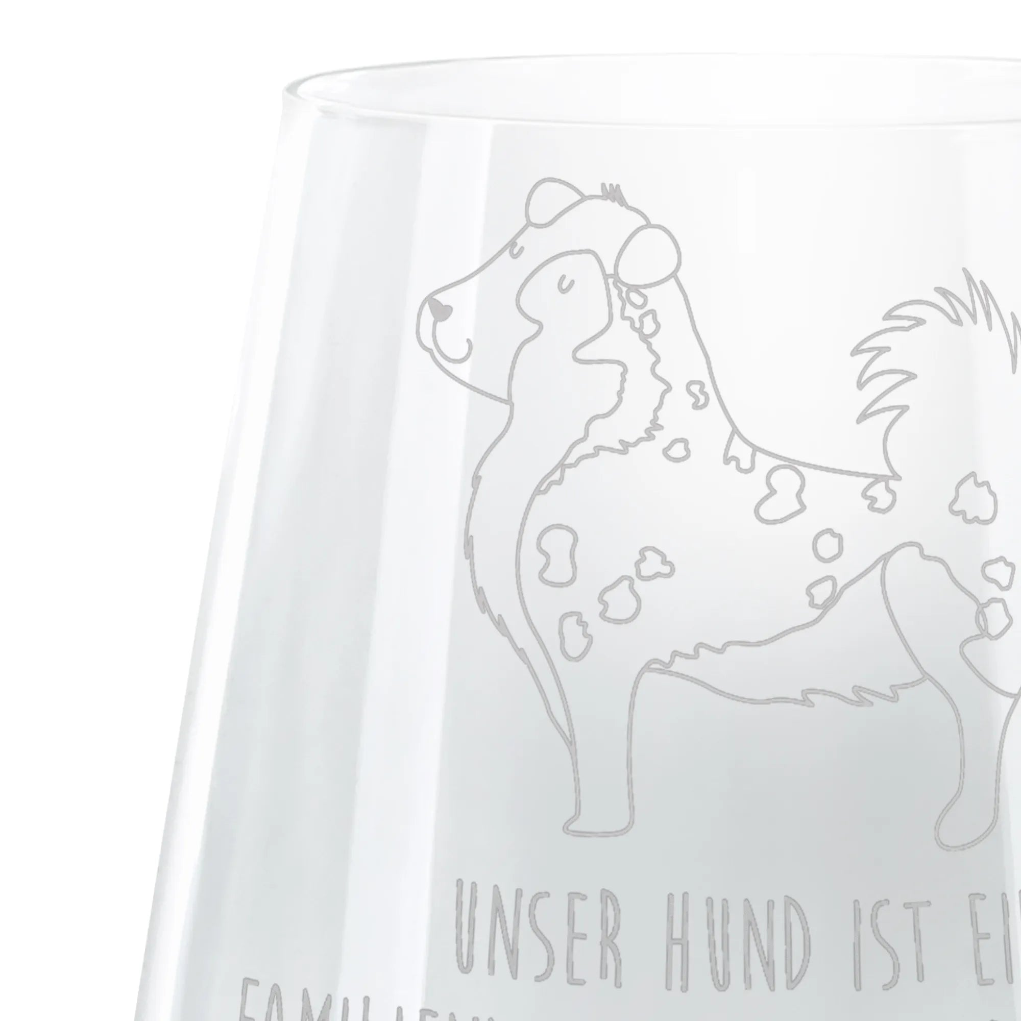 Die hochwertige Lasergravur sorgt für einen einzigartigen matteffekt, der das Bild eines liebreizenden Australian Shepherds mit einer schönen Blumenranke dekoriert. Der Spruch 'Unser Hund ist ein Familienmitglied, guter Freund, Aufpasser und Wegbegleiter.' macht das Glas noch spezieller und hebt die enge Verbindung zu deinem Vierbeiner hervor.